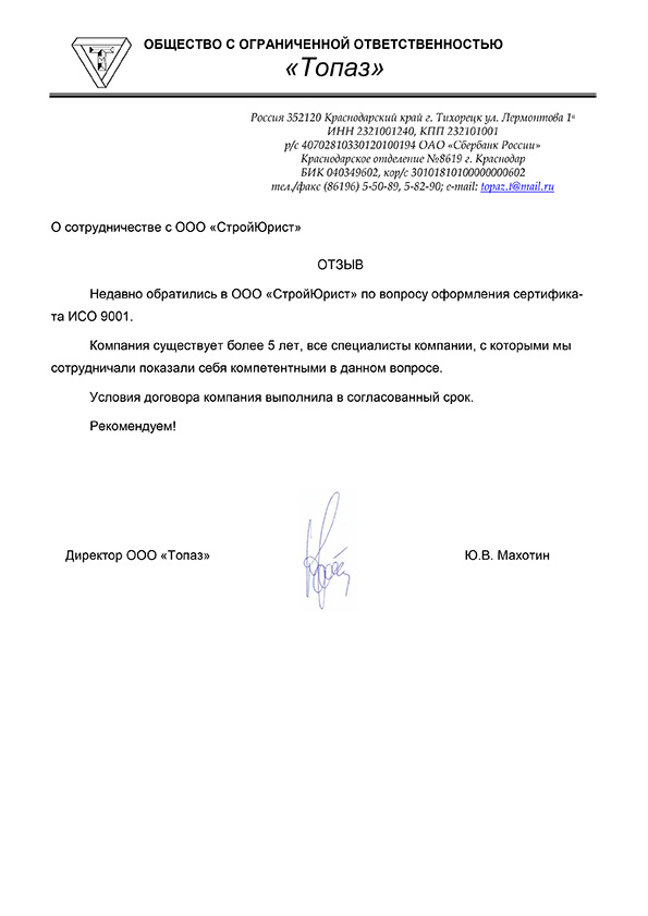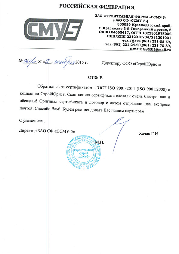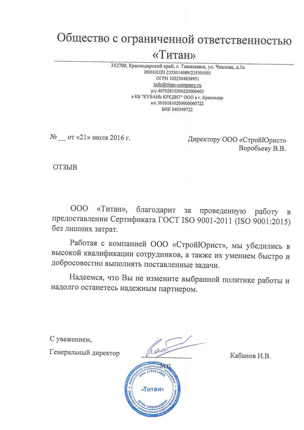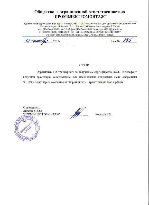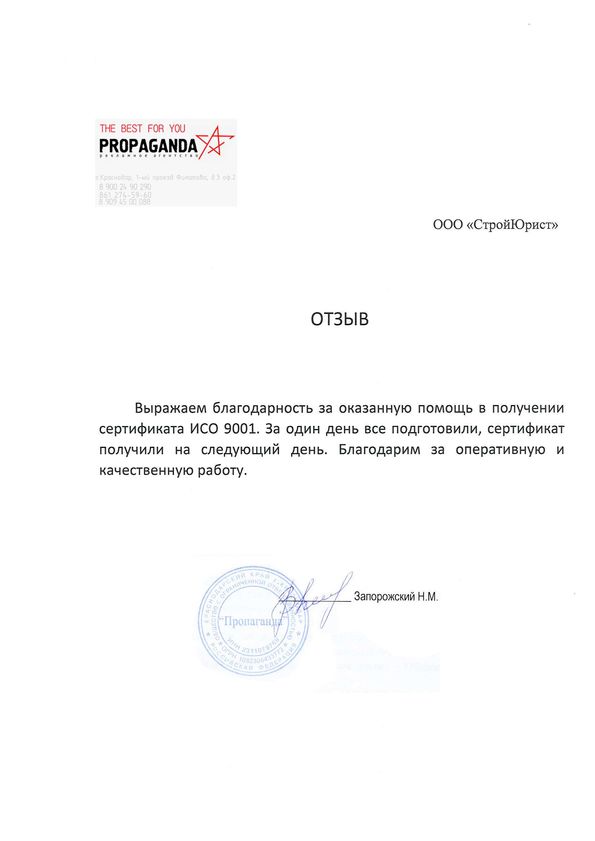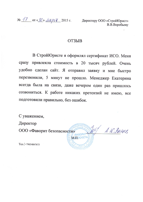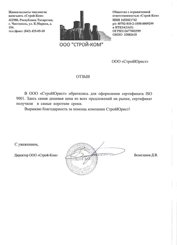 Отзывы клиентов "СтройЮрист" по ISO в Березниках
