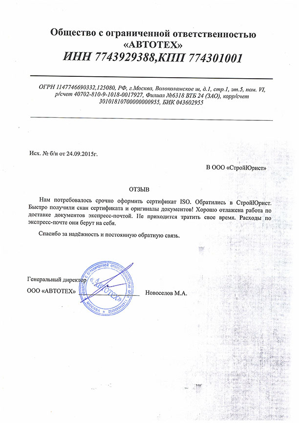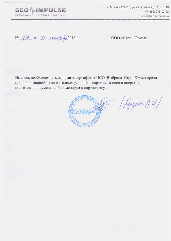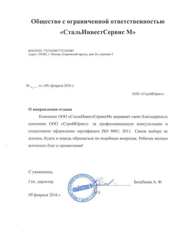 Отзывы клиентов "СтройЮрист" по ISO в Березниках