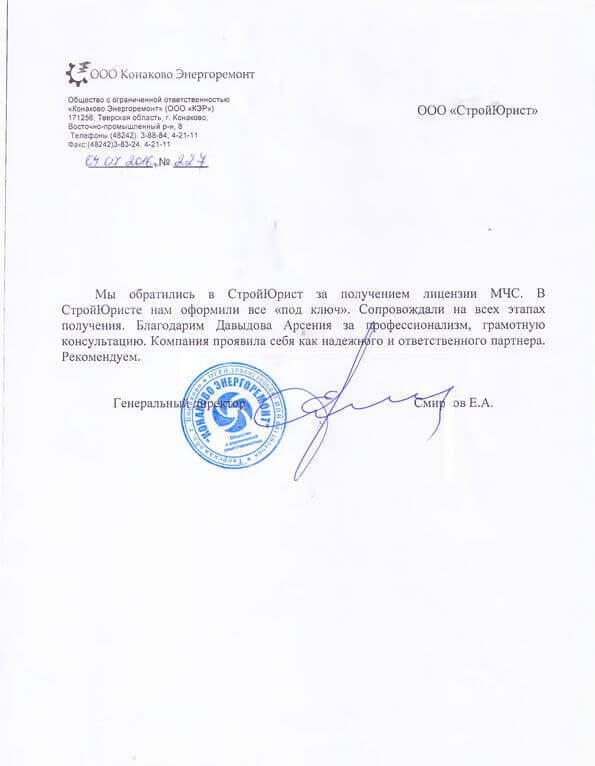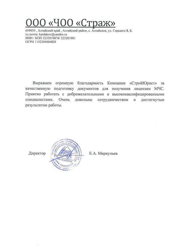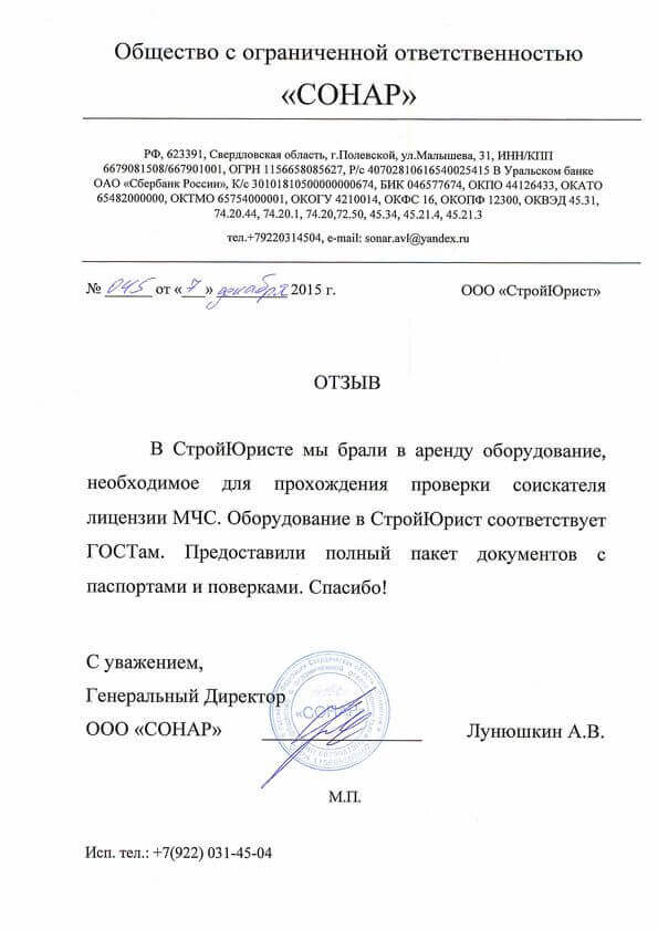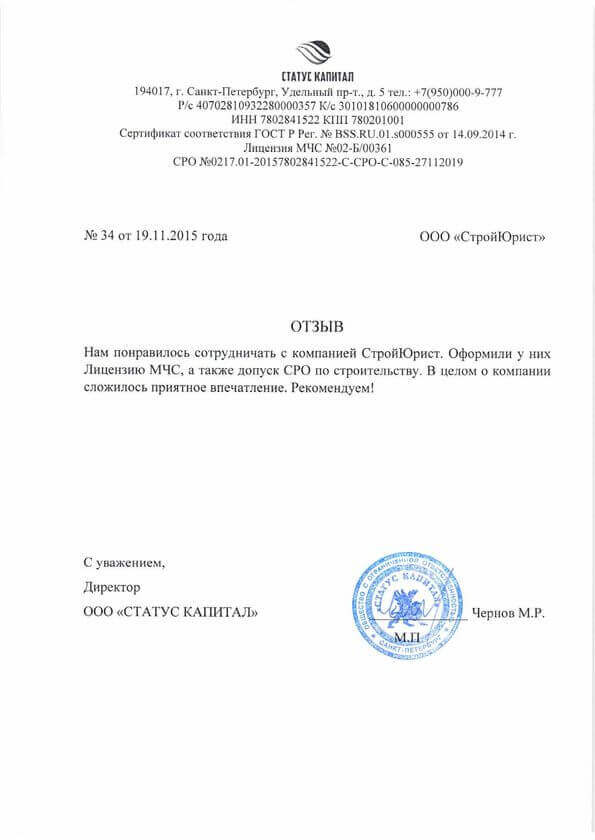 Отзывы клиентов "СтройЮрист" по лицензированию МЧС в Березниках