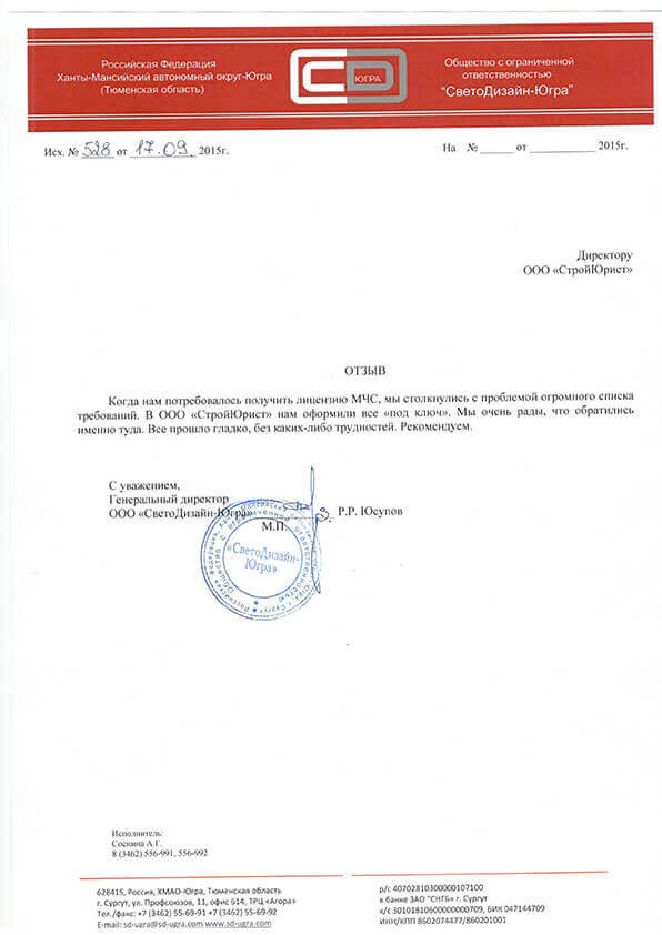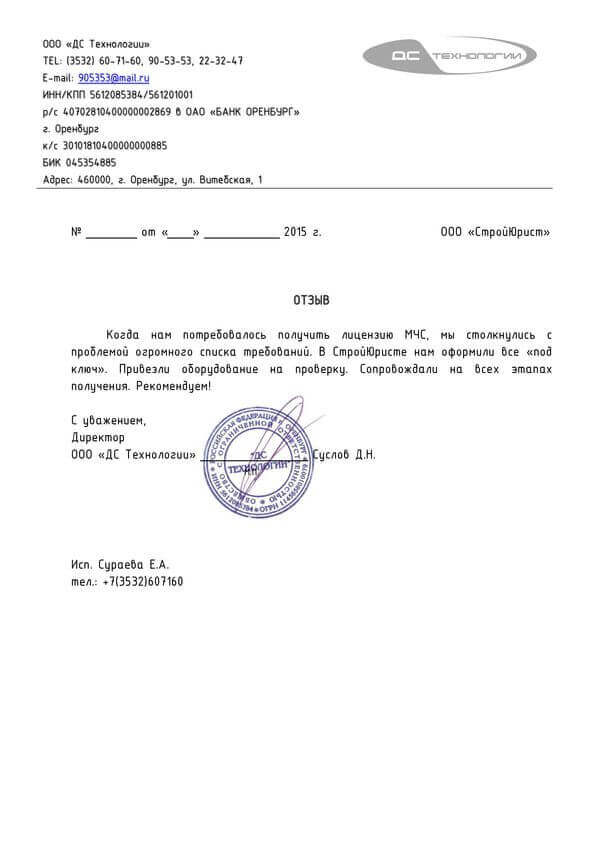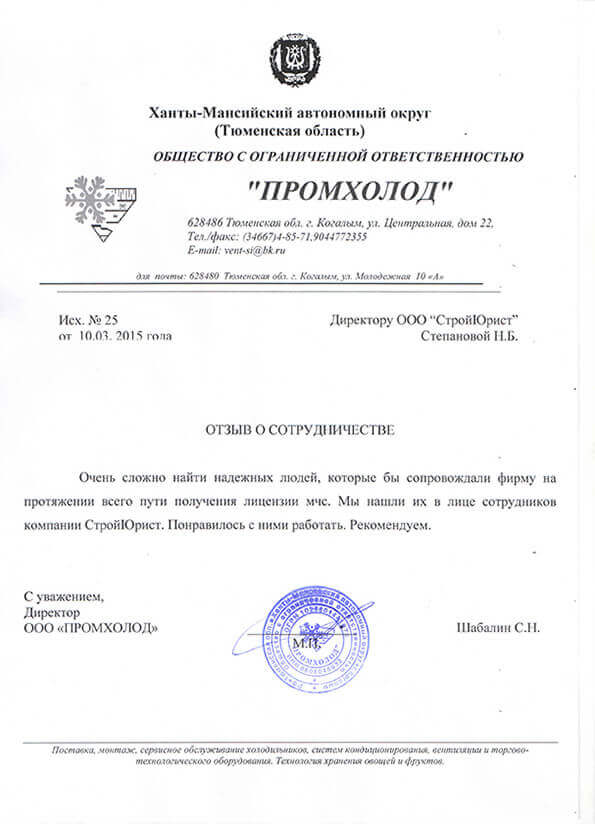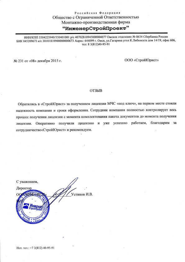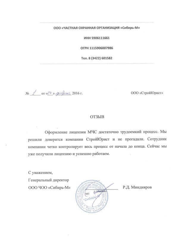 Отзывы клиентов "СтройЮрист" по лицензированию МЧС в Березниках