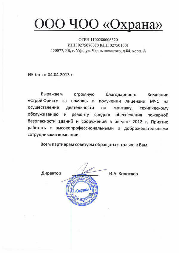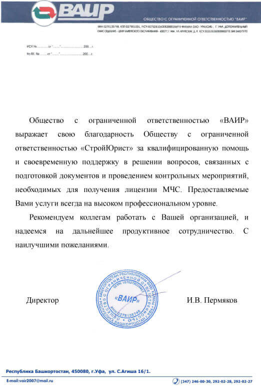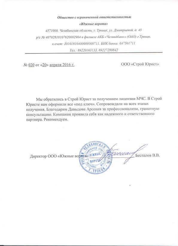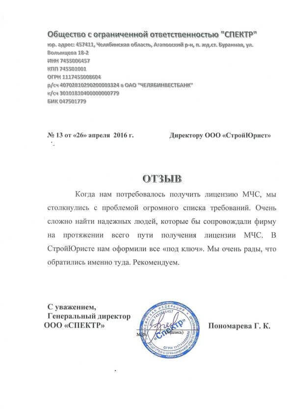 Отзывы клиентов "СтройЮрист" по лицензированию МЧС в Березниках