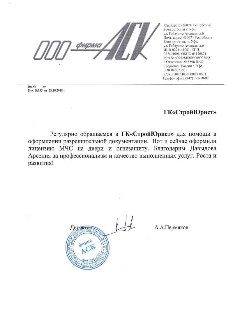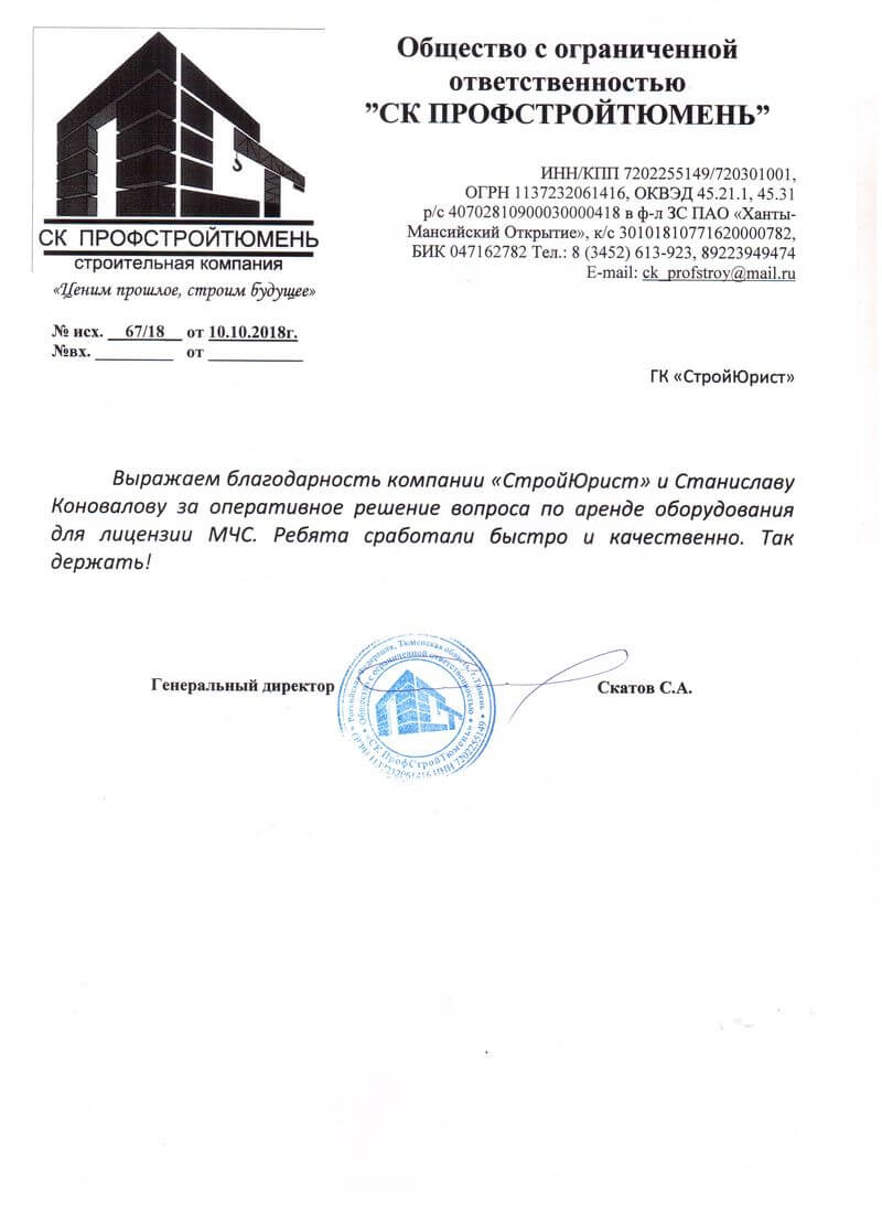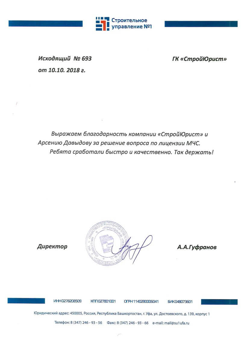 Отзывы клиентов "СтройЮрист" по лицензированию МЧС в Березниках