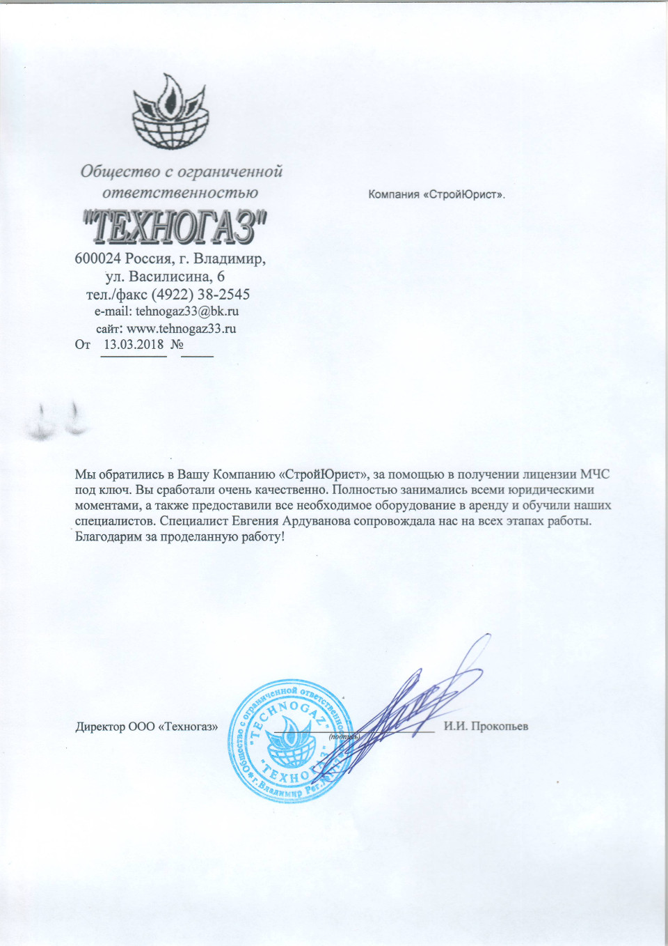 Отзывы клиентов "СтройЮрист" по лицензированию МЧС в Березниках
