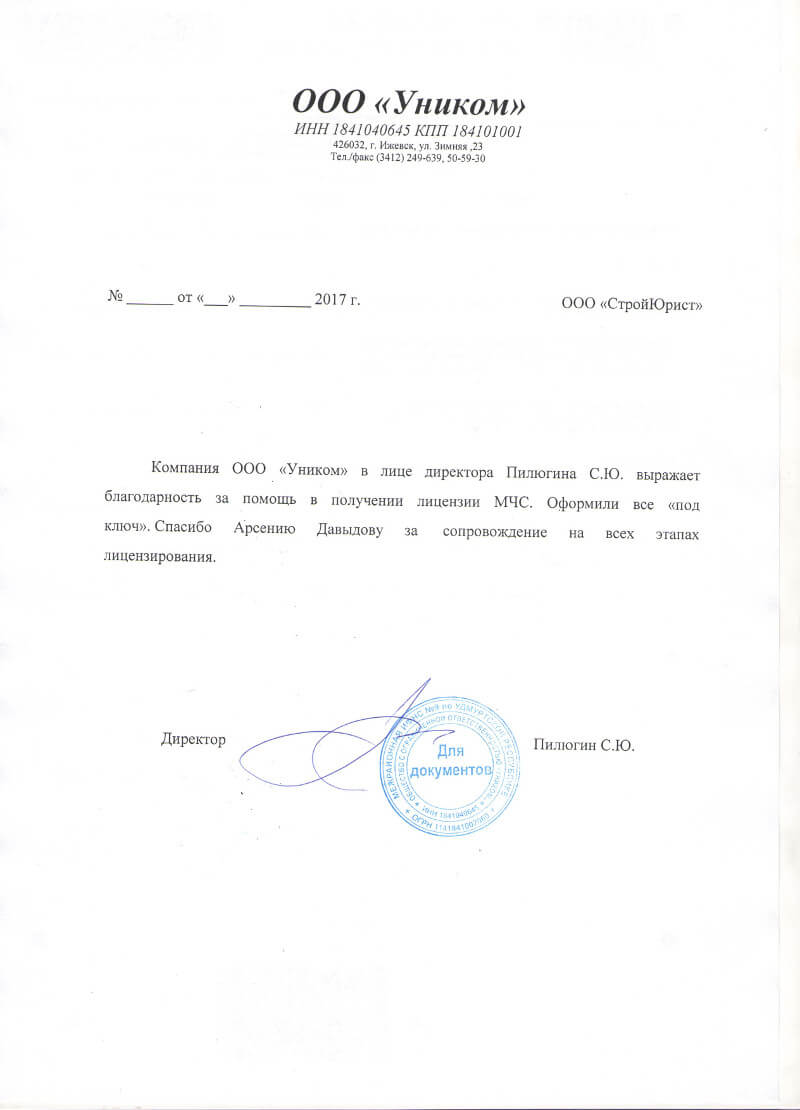 Отзывы клиентов "СтройЮрист" по лицензированию МЧС в Березниках
