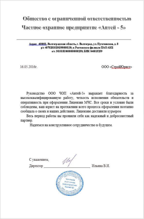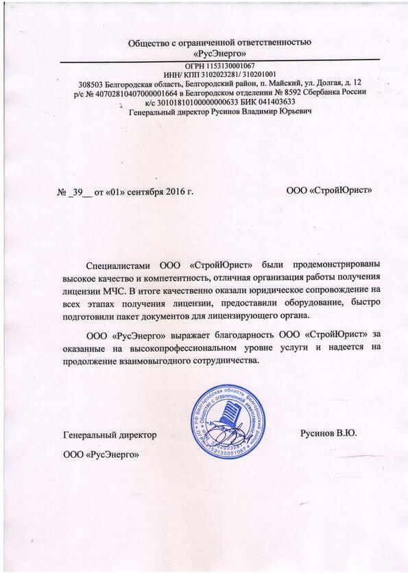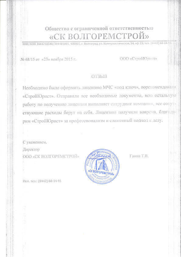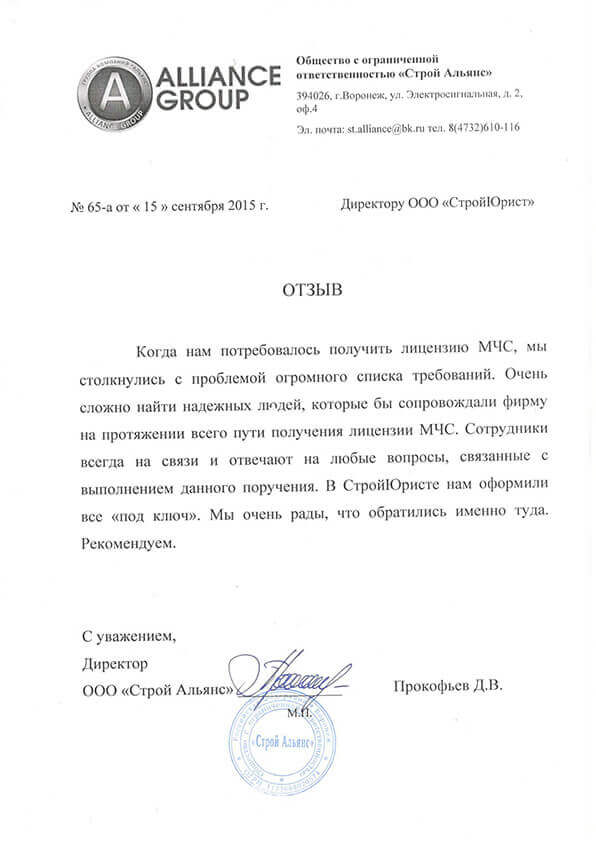 Отзывы клиентов "СтройЮрист" по лицензированию МЧС в Березниках