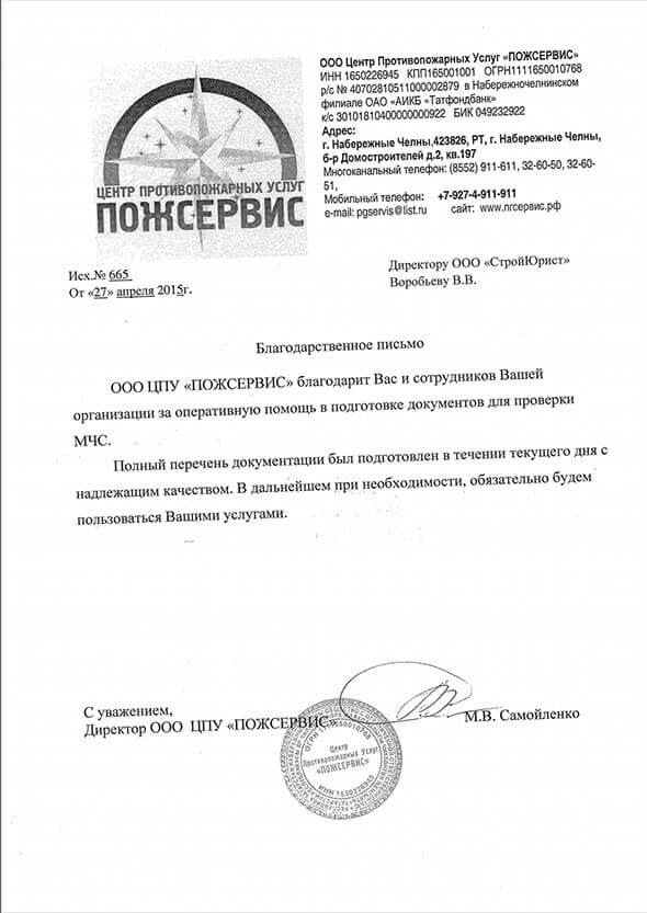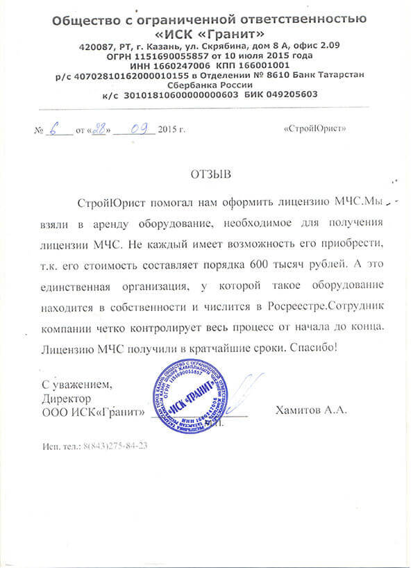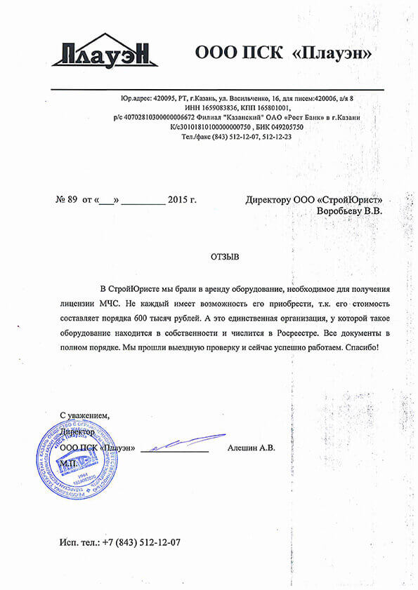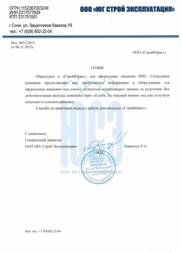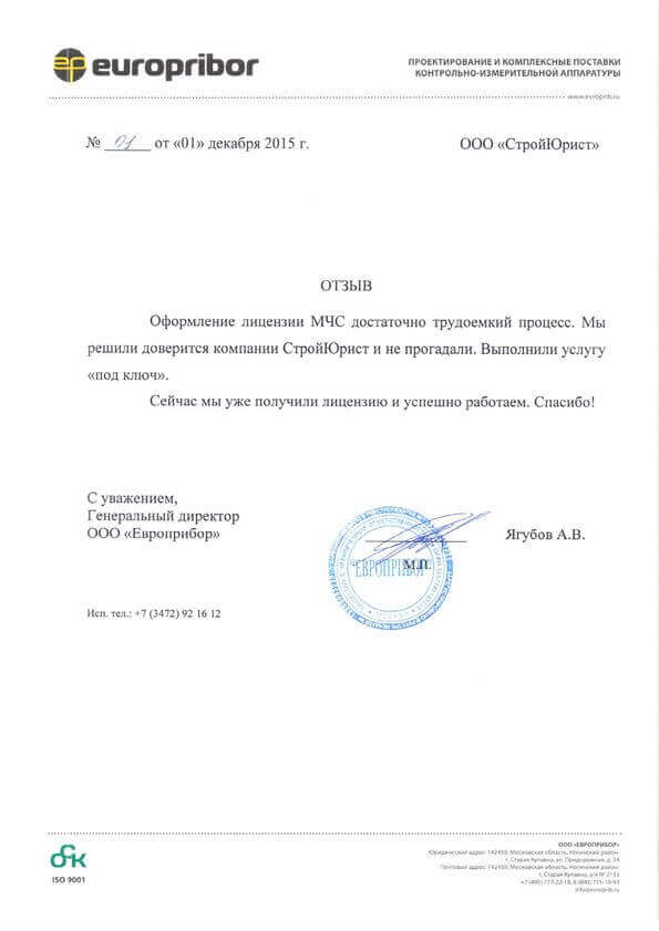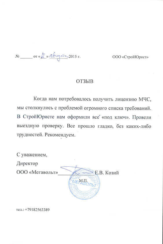 Отзывы клиентов "СтройЮрист" по лицензированию МЧС в Березниках