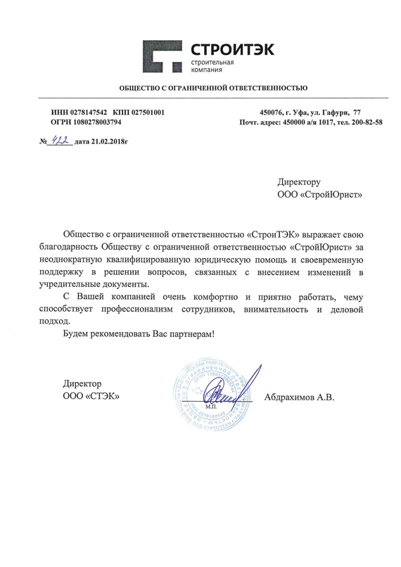 Отзывы клиентов "СтройЮрист" по регистрации фирм в Березниках