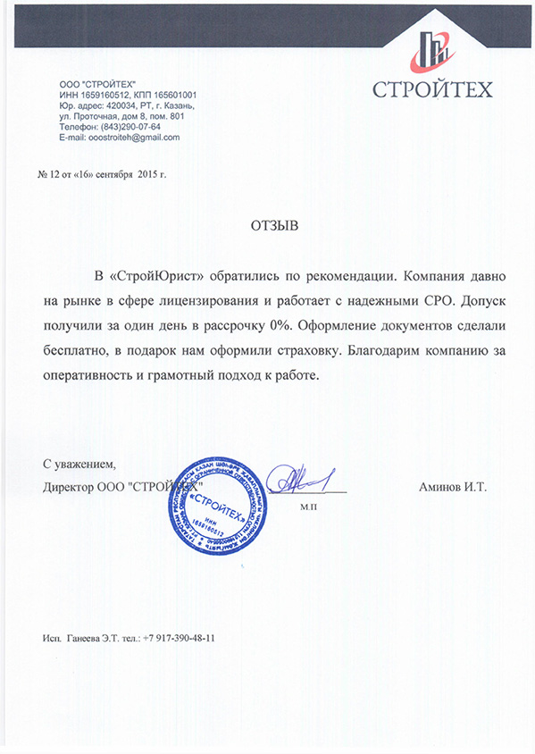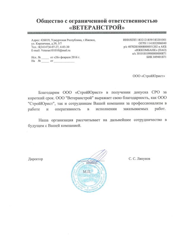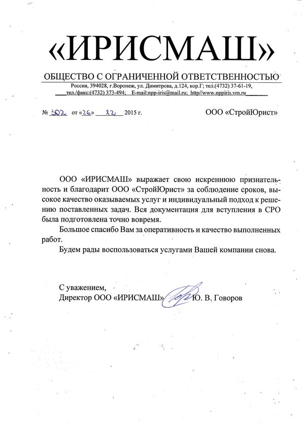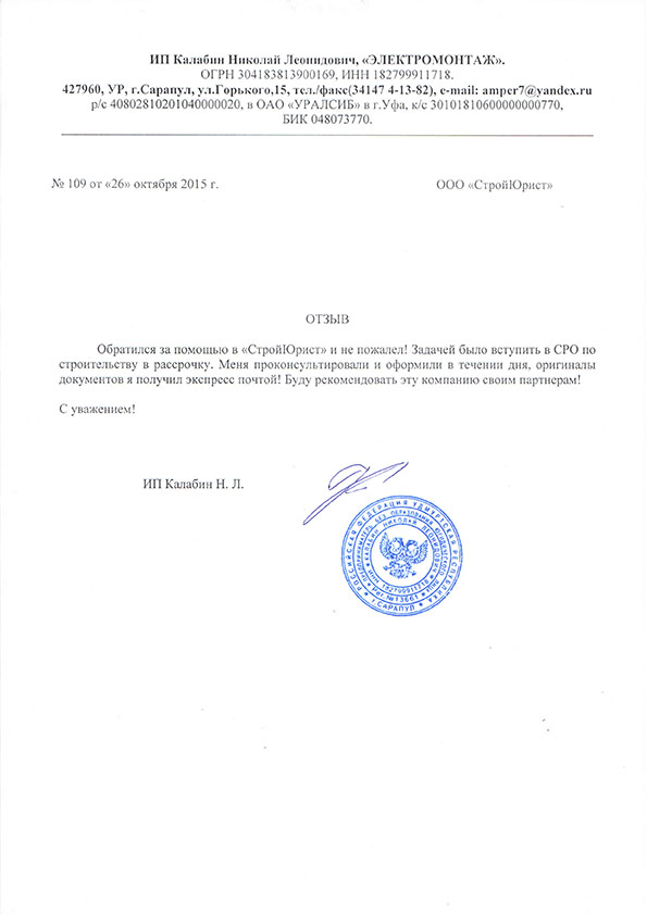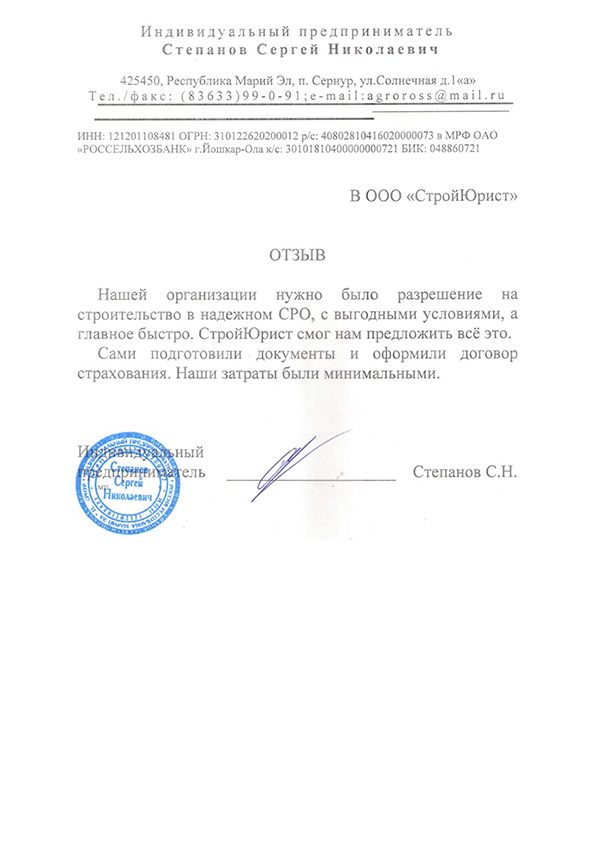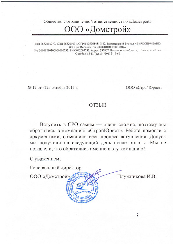 Отзывы клиентов "СтройЮрист" по вступлению в СРО в Березниках