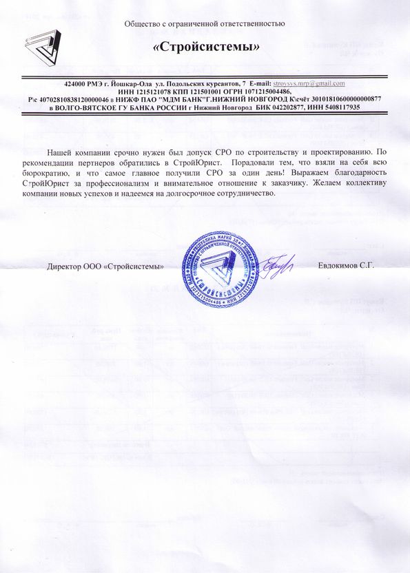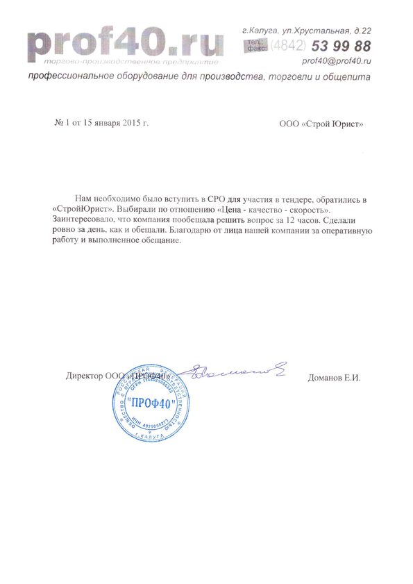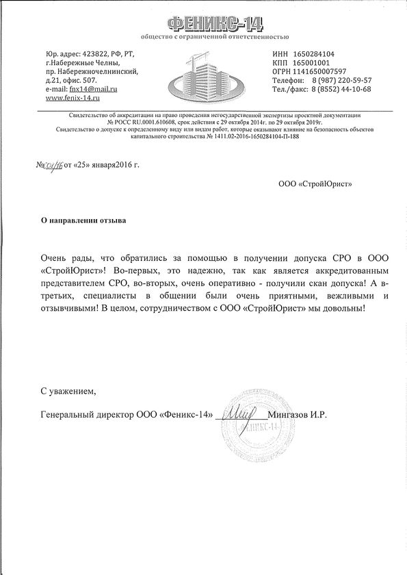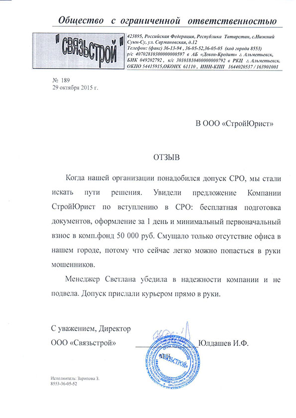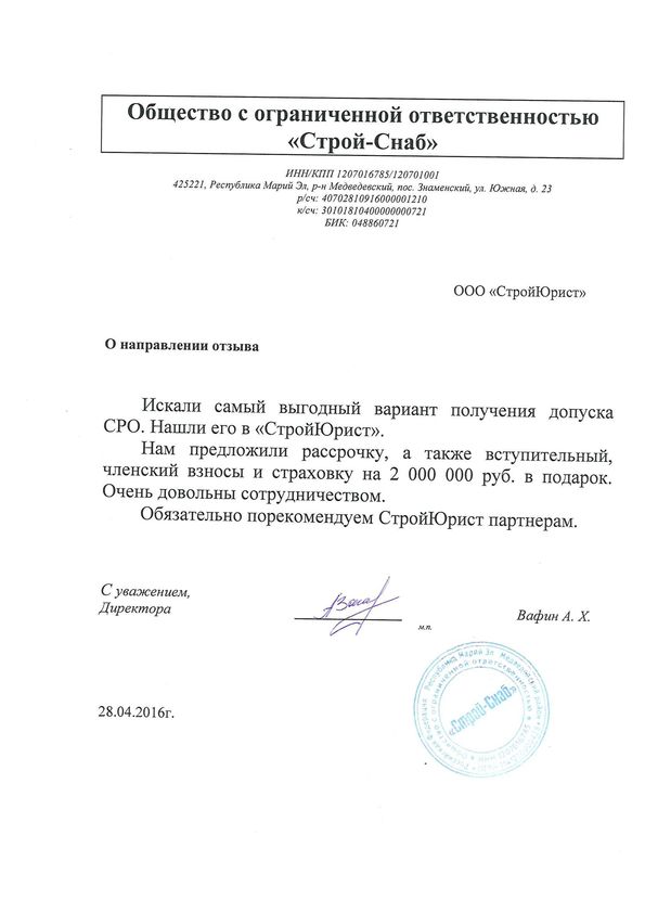 Отзывы клиентов "СтройЮрист" по вступлению в СРО в Березниках