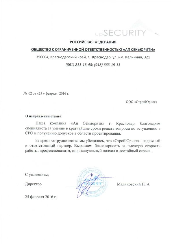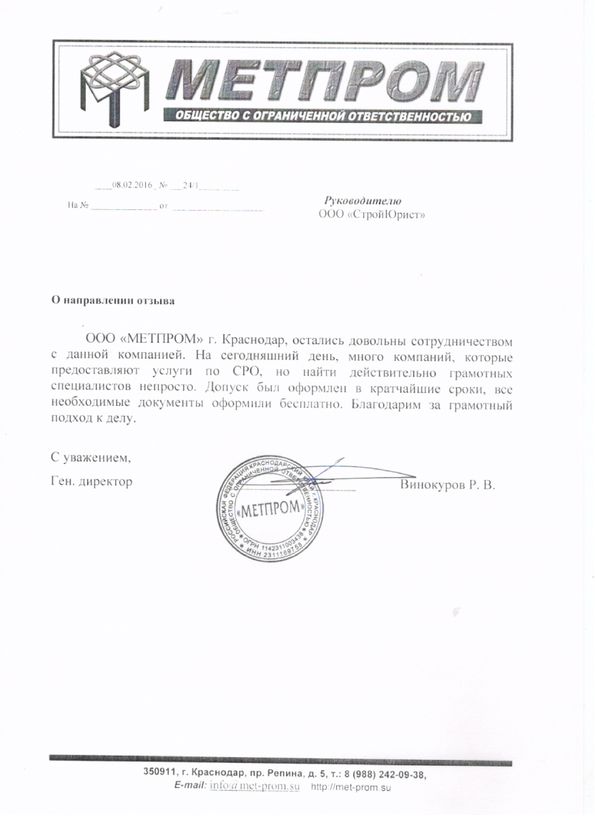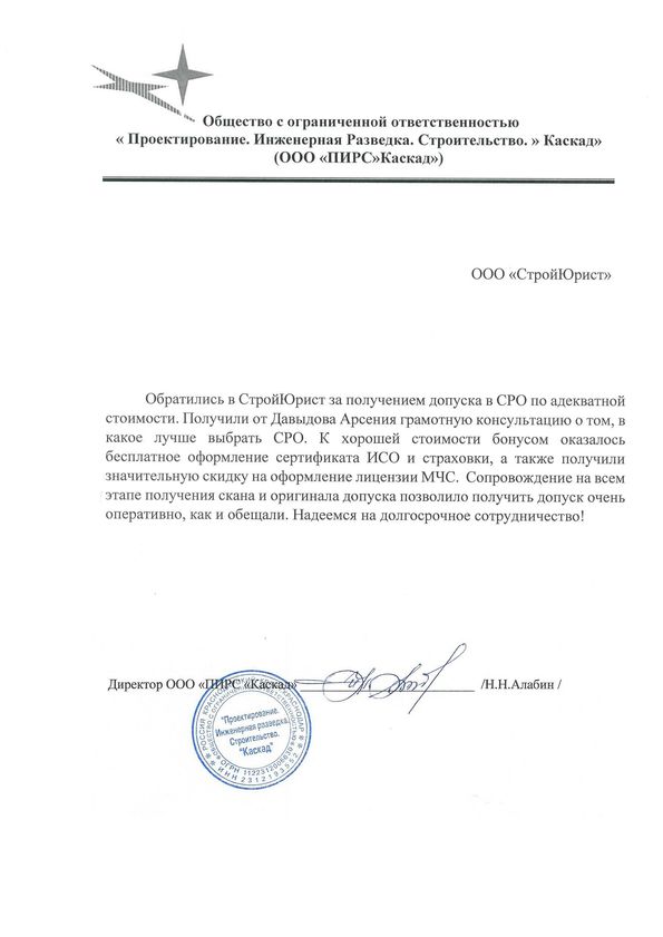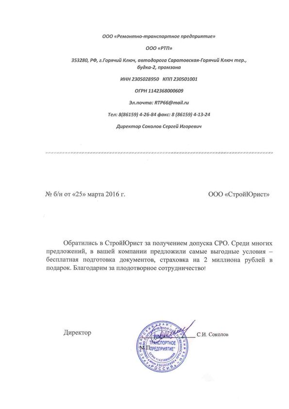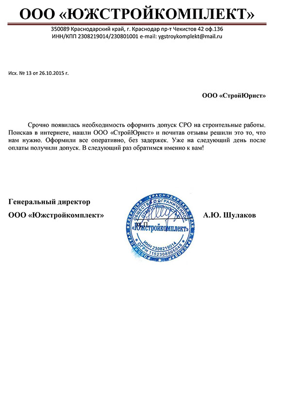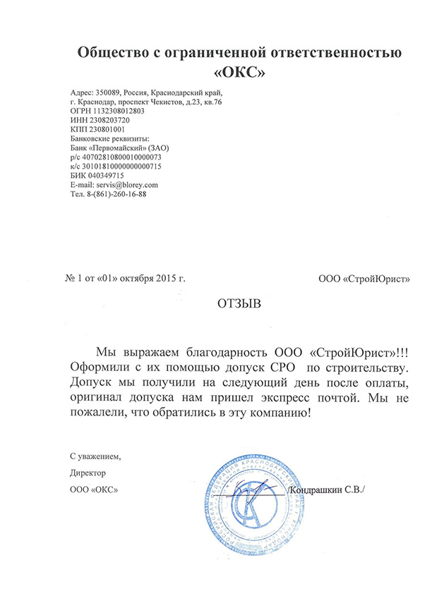Отзывы клиентов "СтройЮрист" по вступлению в СРО в Березниках