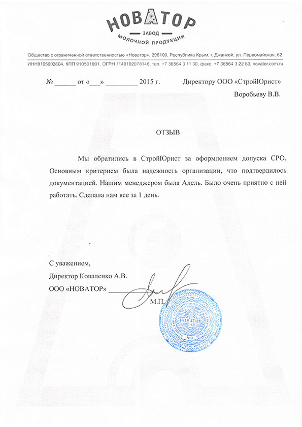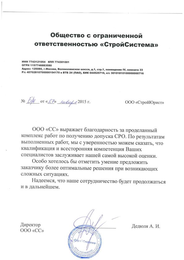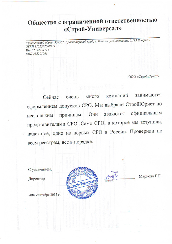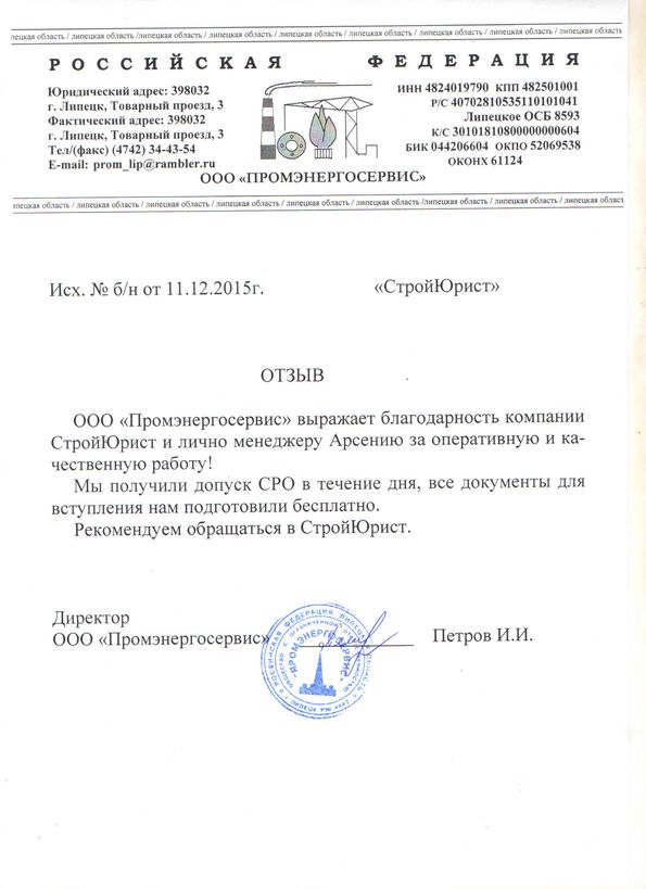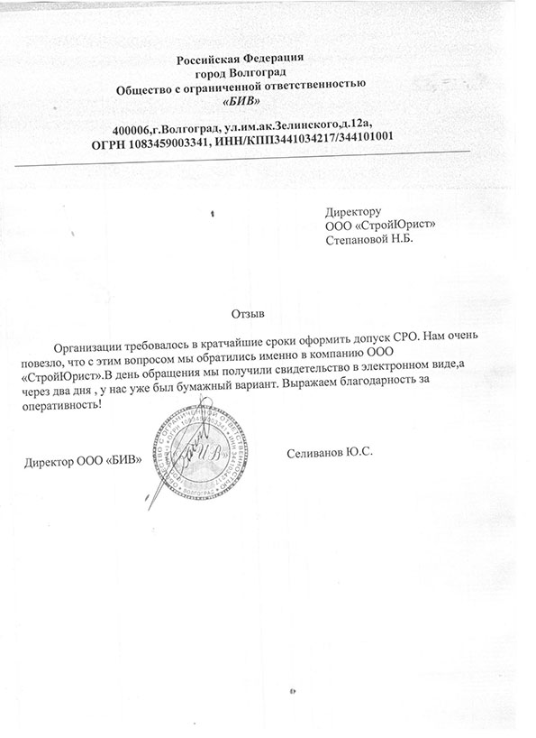 Отзывы клиентов "СтройЮрист" по вступлению в СРО в Березниках