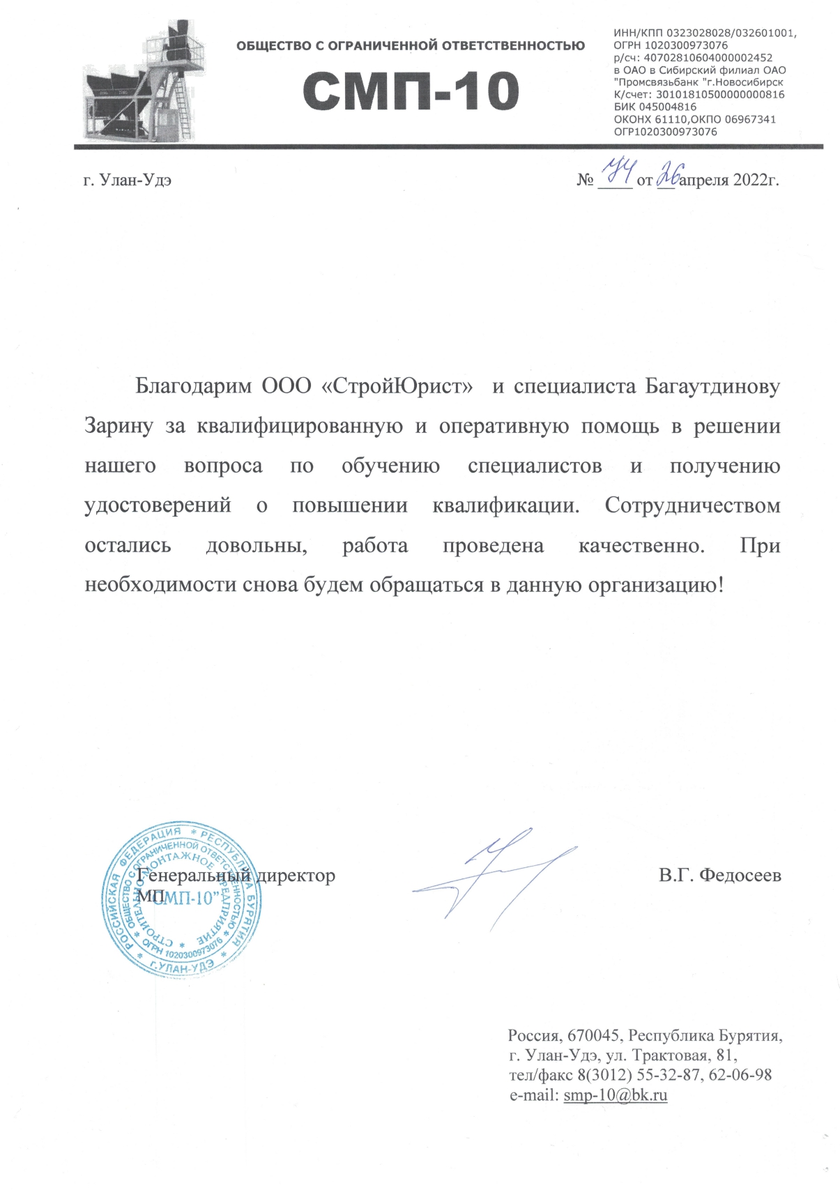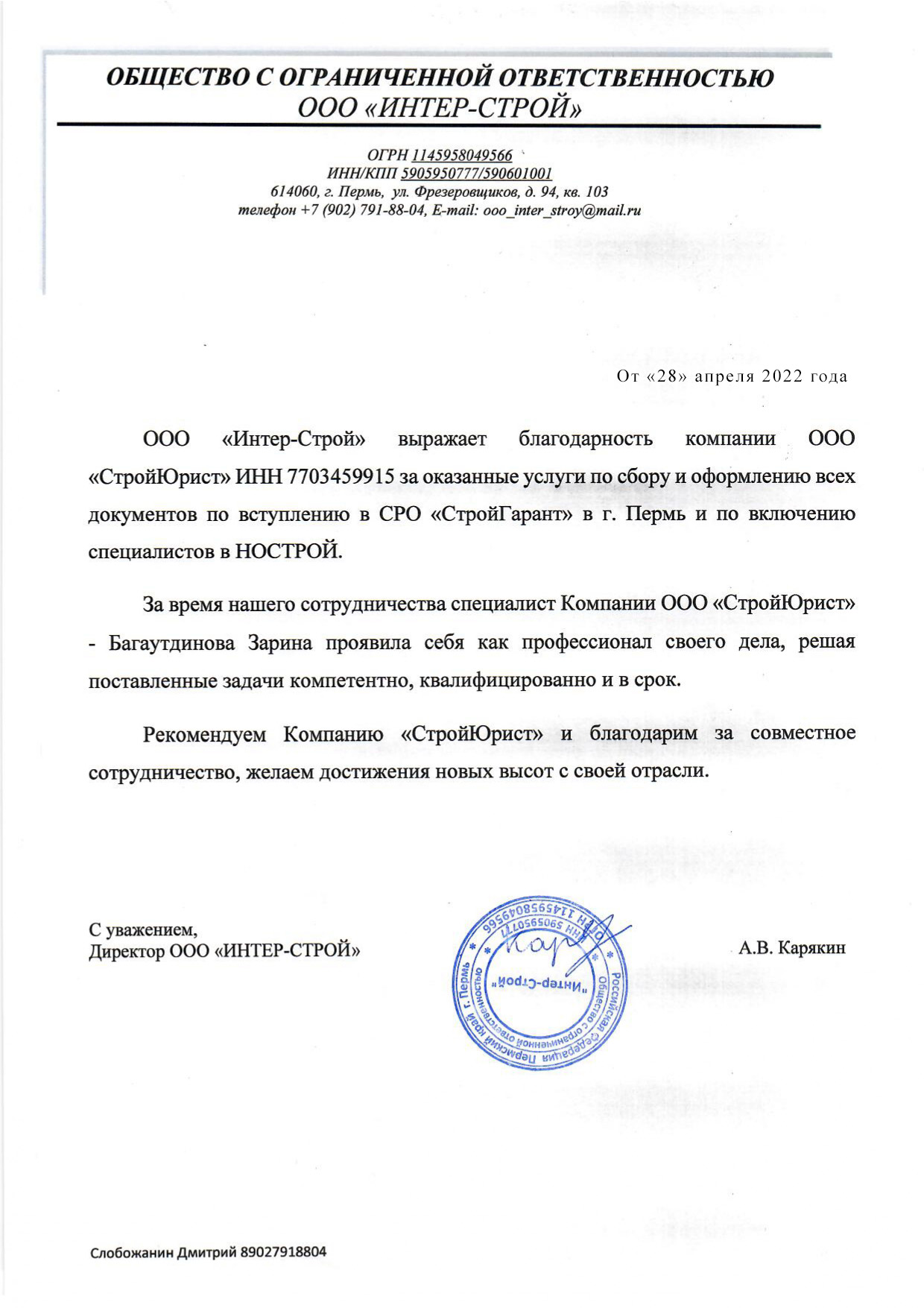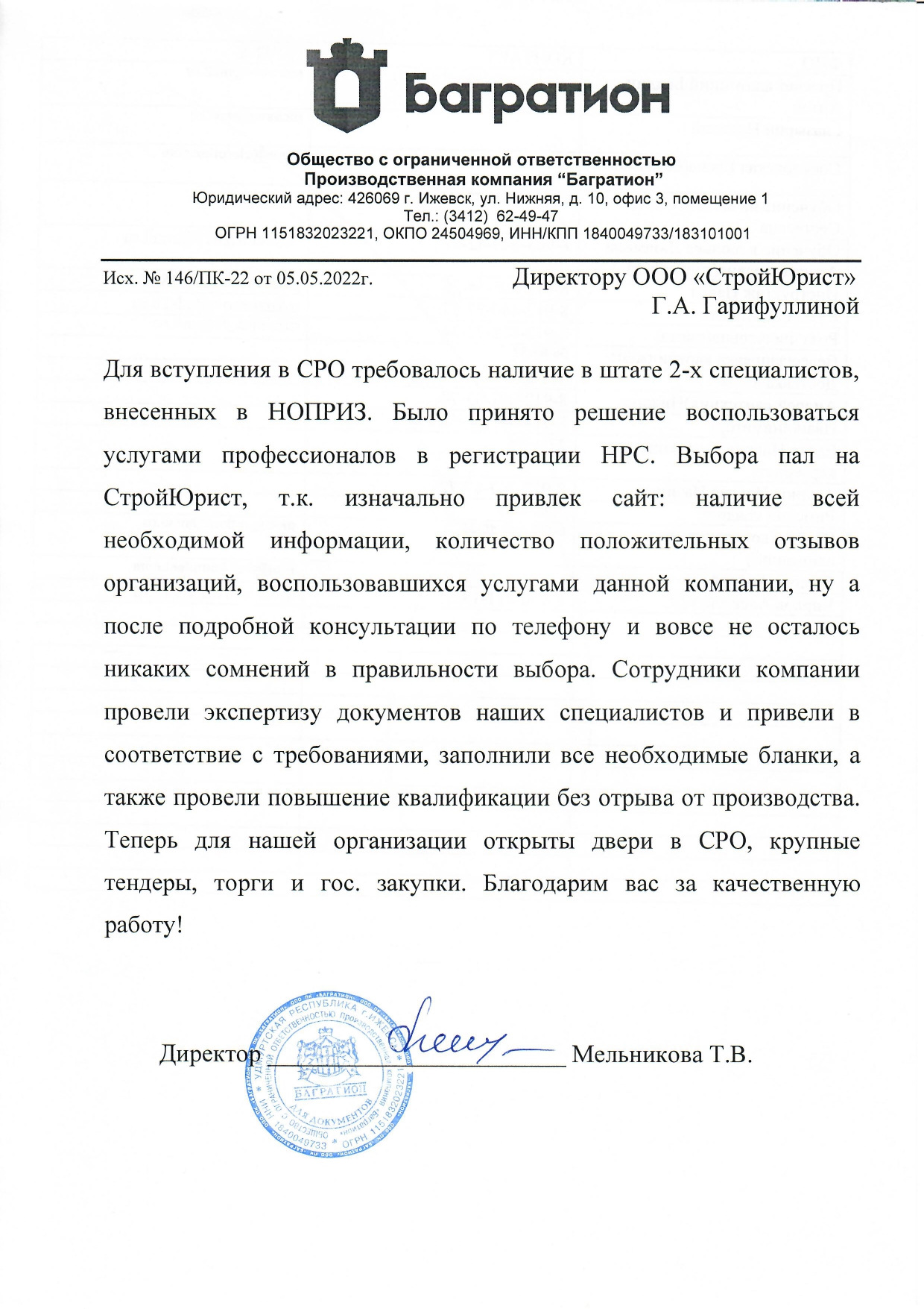 Отзывы клиентов "СтройЮрист" по вступлению в СРО в Березниках