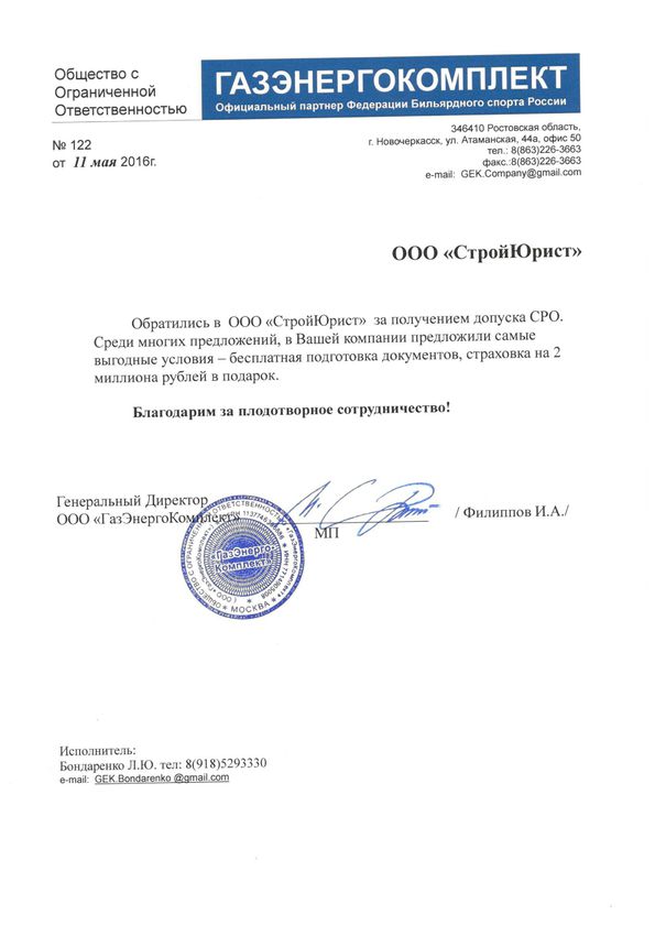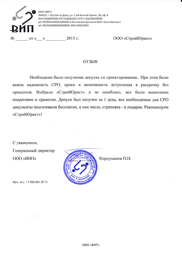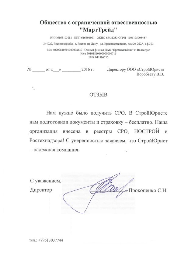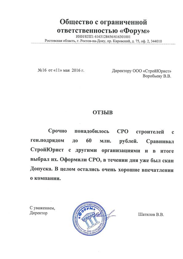 Отзывы клиентов "СтройЮрист" по вступлению в СРО в Березниках