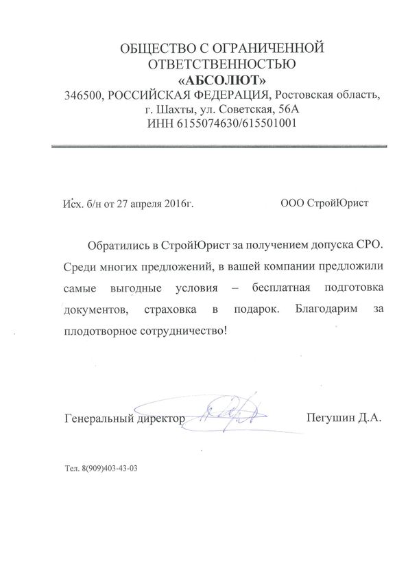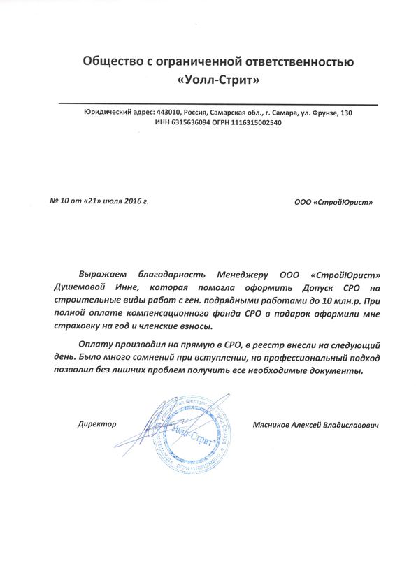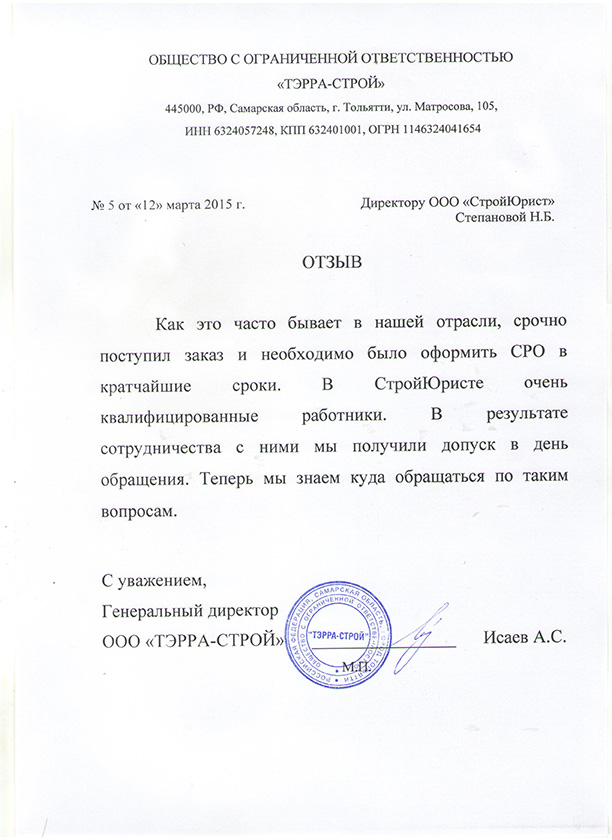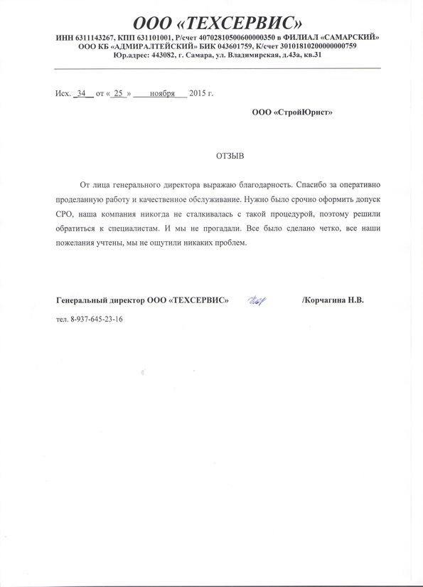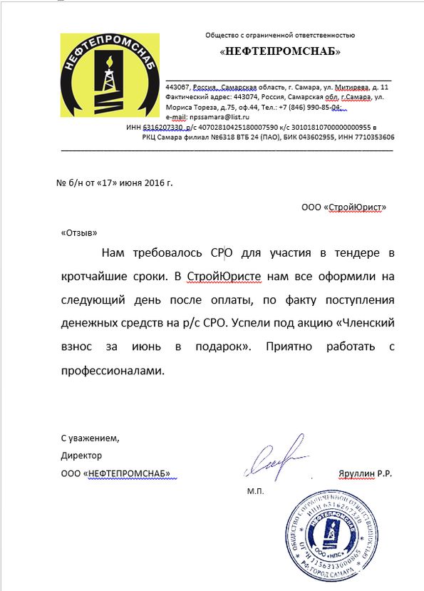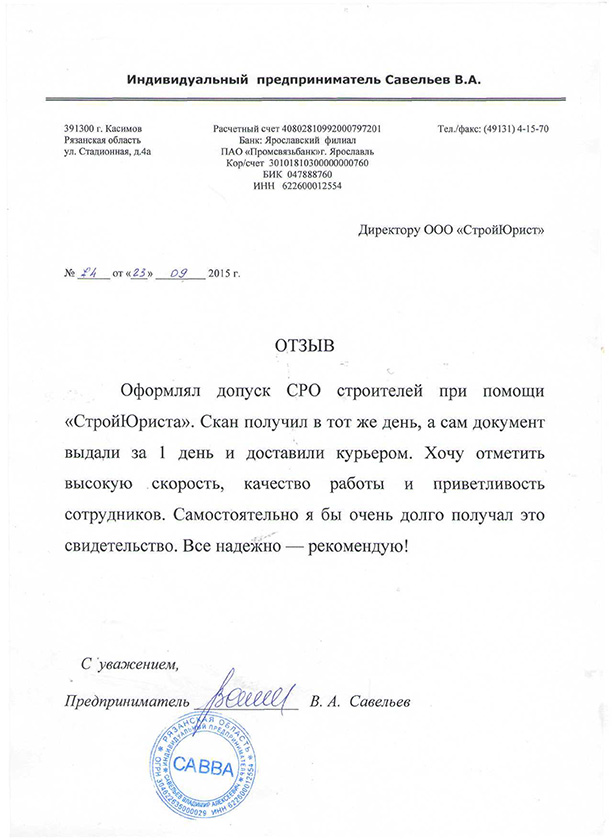 Отзывы клиентов "СтройЮрист" по вступлению в СРО в Березниках