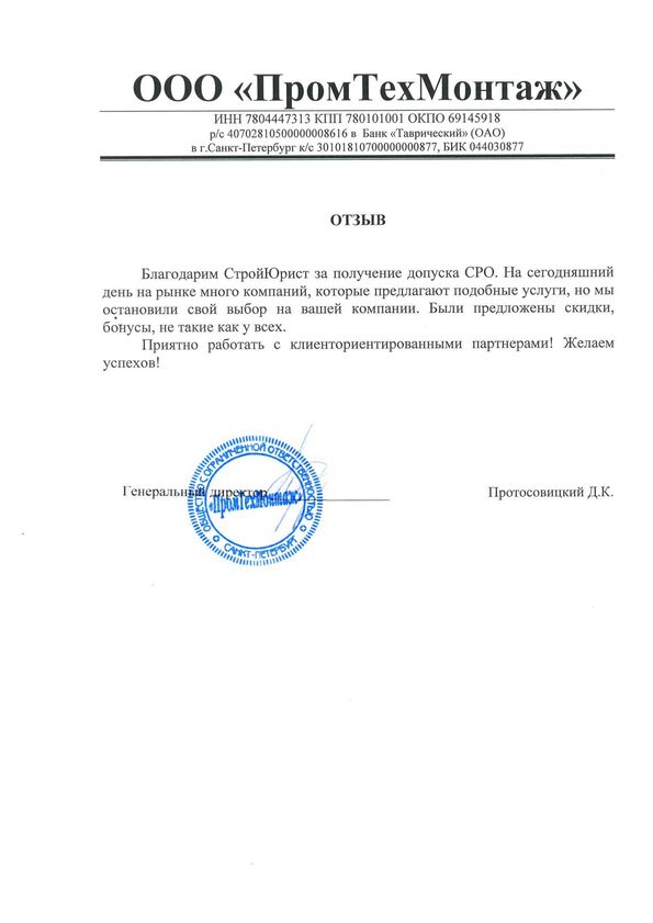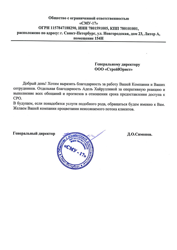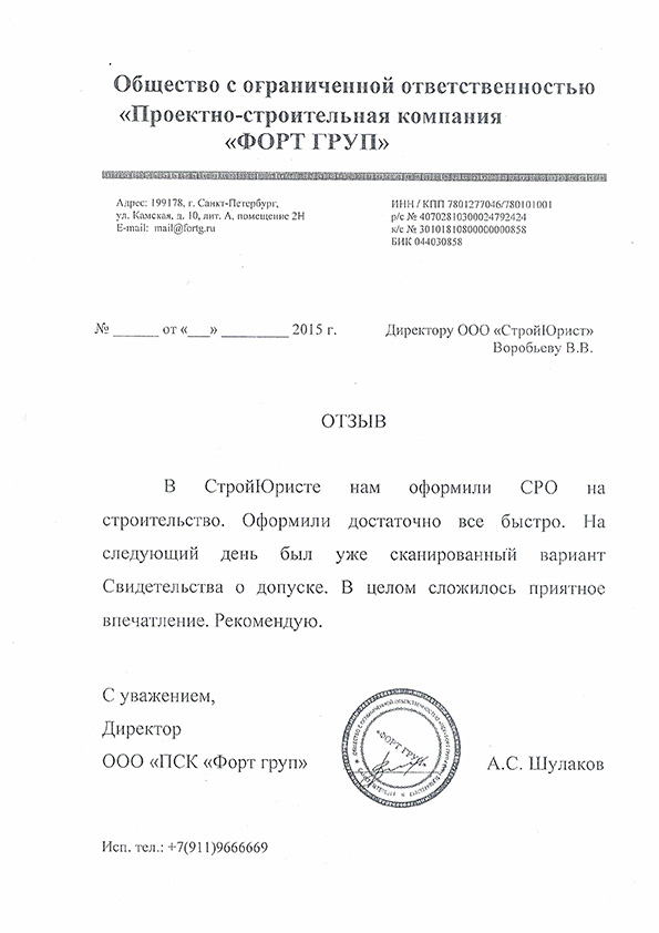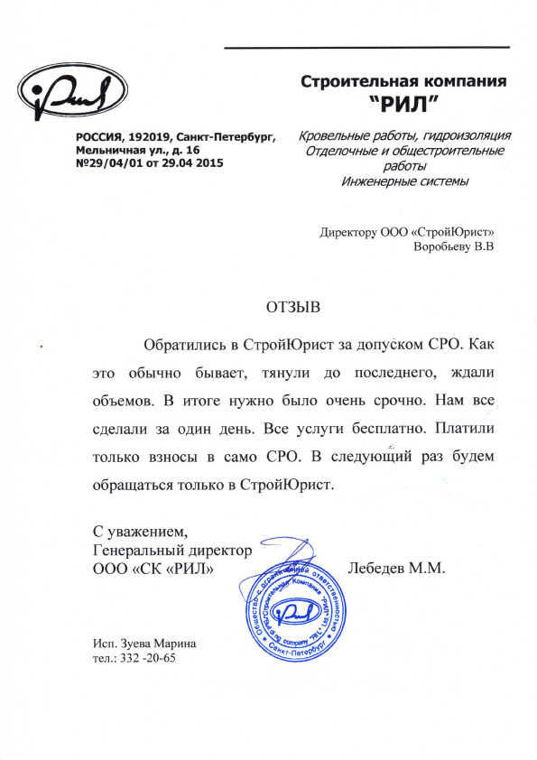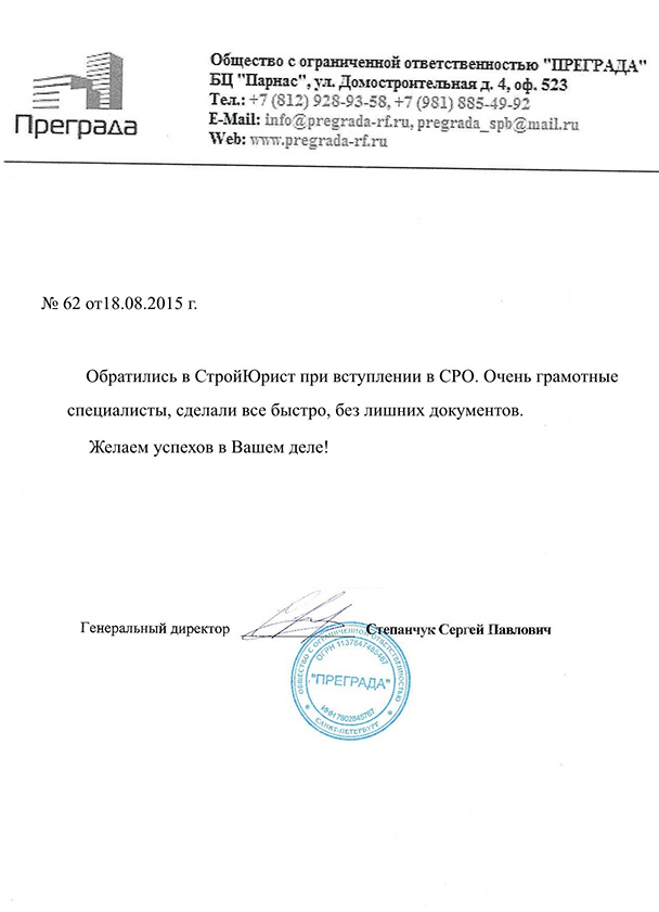 Отзывы клиентов "СтройЮрист" по вступлению в СРО в Березниках