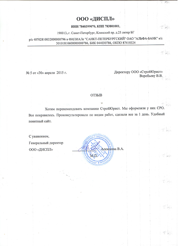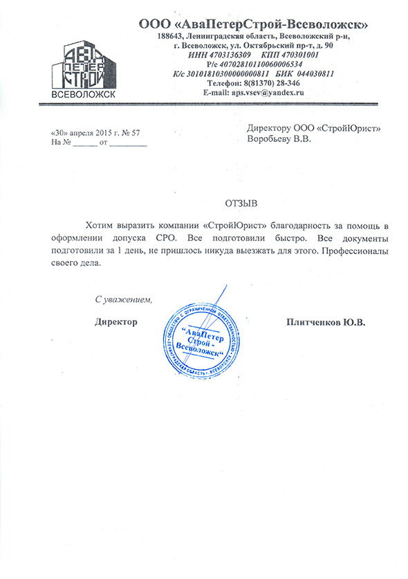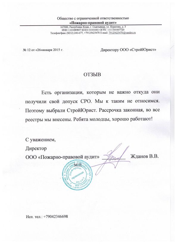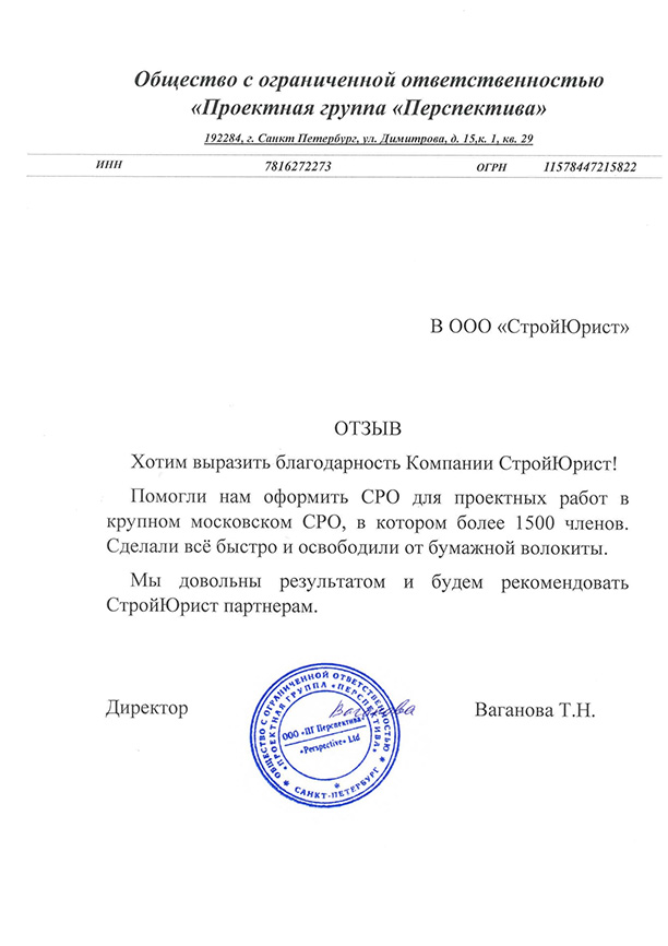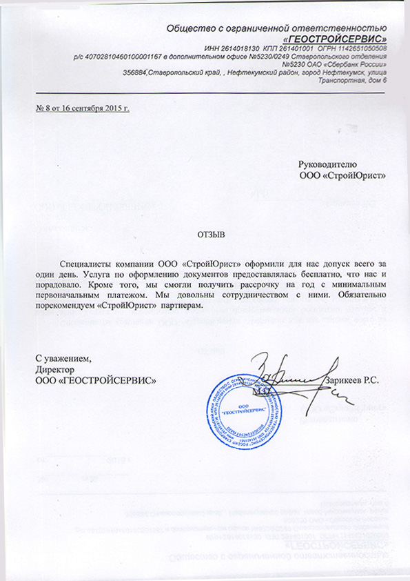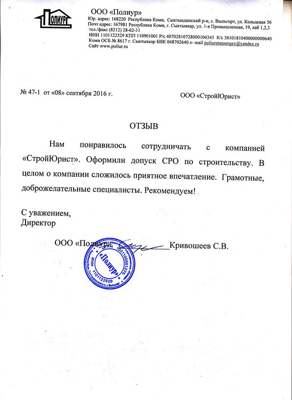 Отзывы клиентов "СтройЮрист" по вступлению в СРО в Березниках