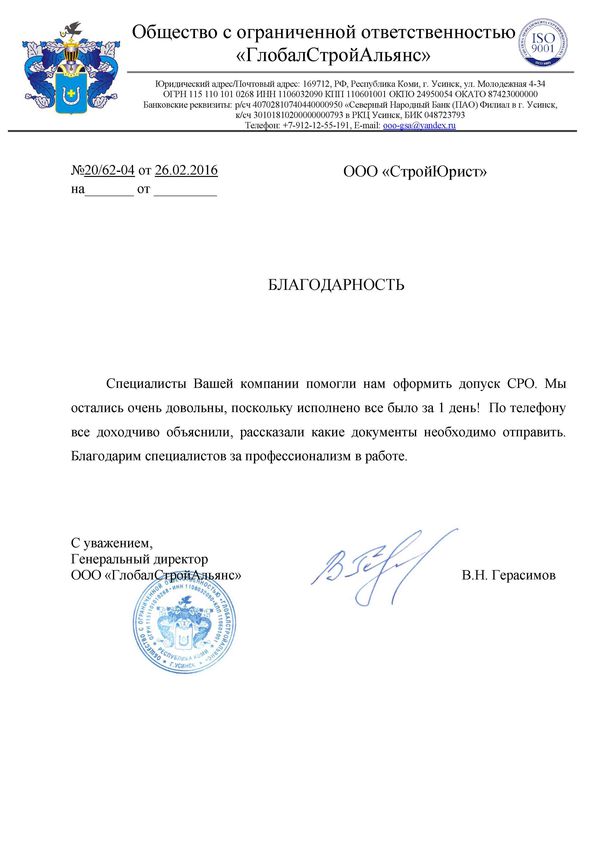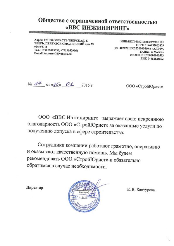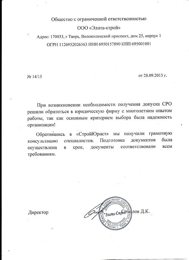 Отзывы клиентов "СтройЮрист" по вступлению в СРО в Березниках