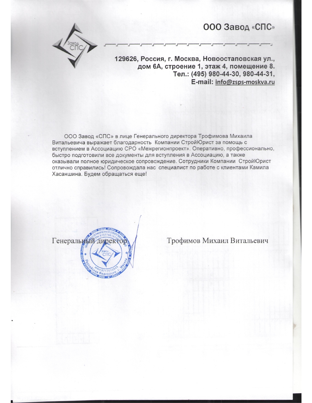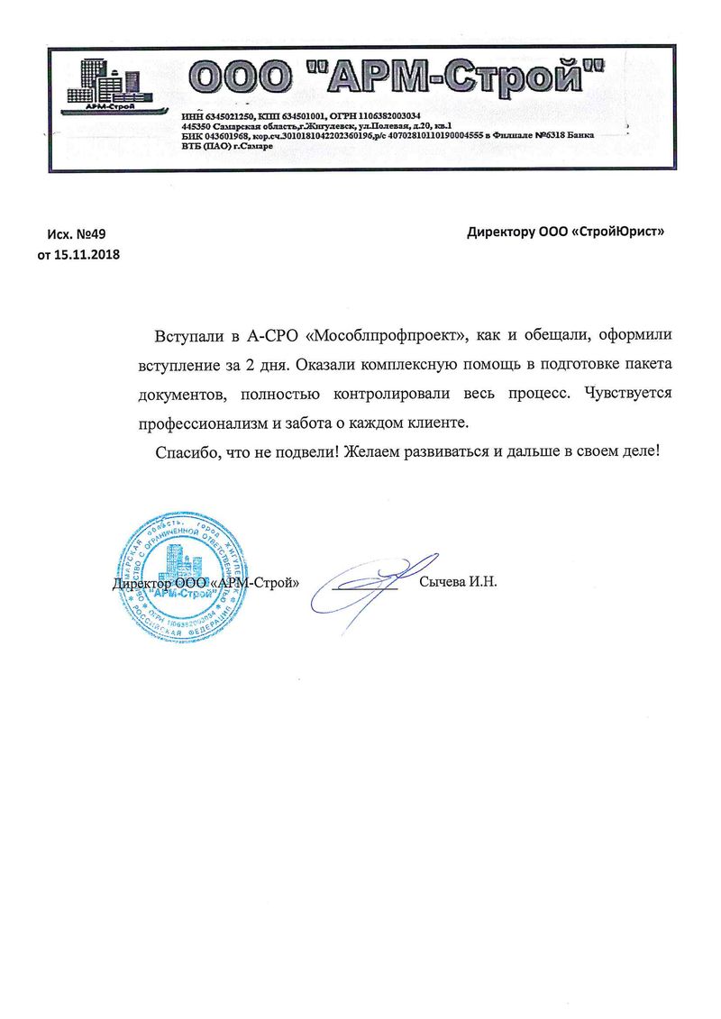 Отзывы клиентов "СтройЮрист" по вступлению в СРО в Березниках