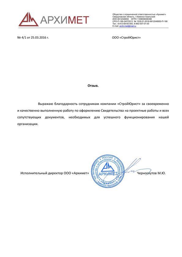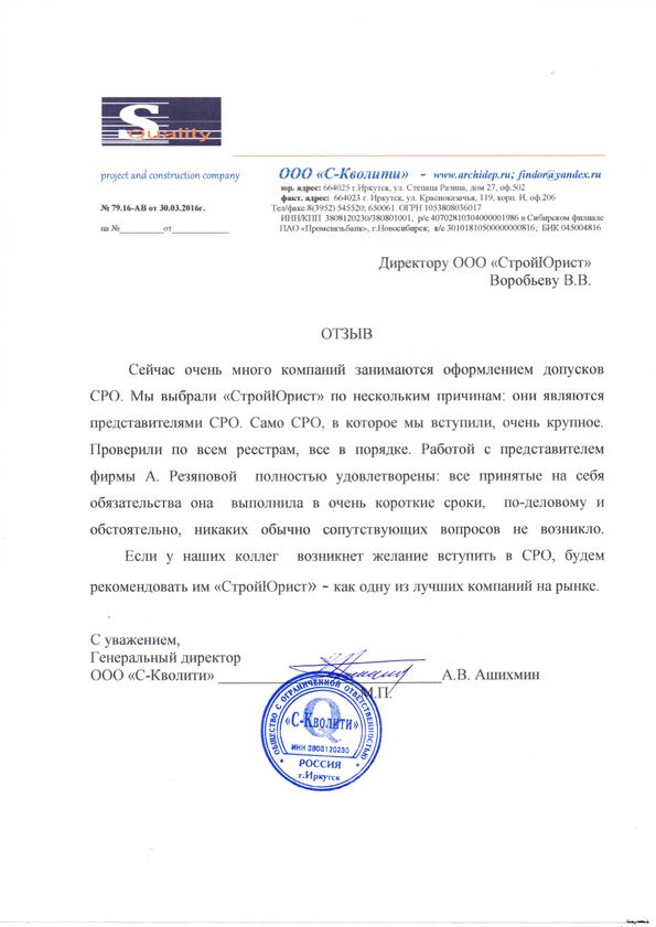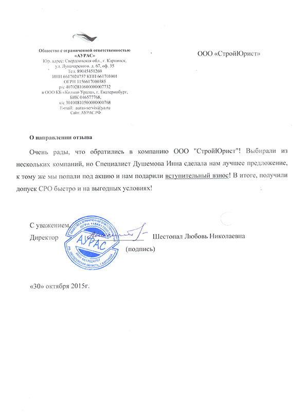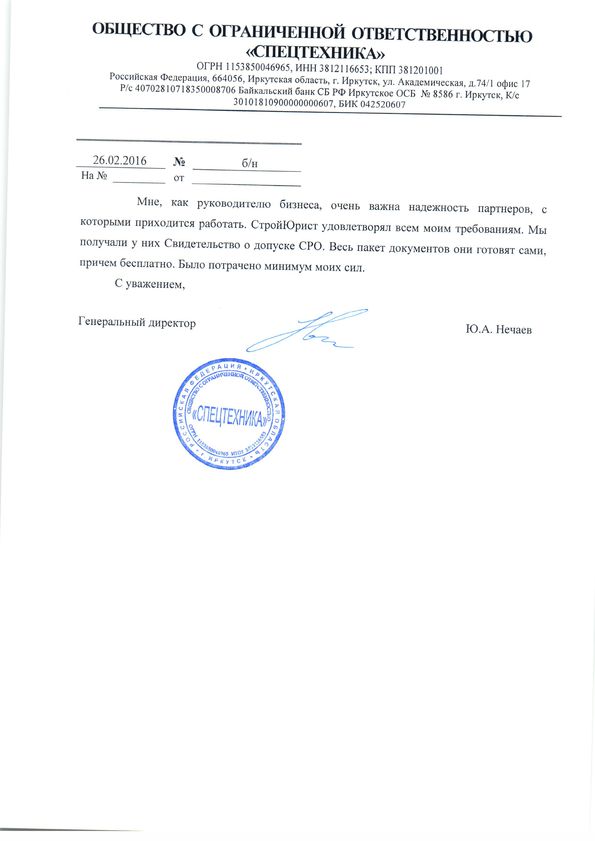 Отзывы клиентов "СтройЮрист" по вступлению в СРО в Березниках