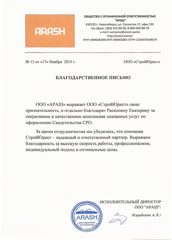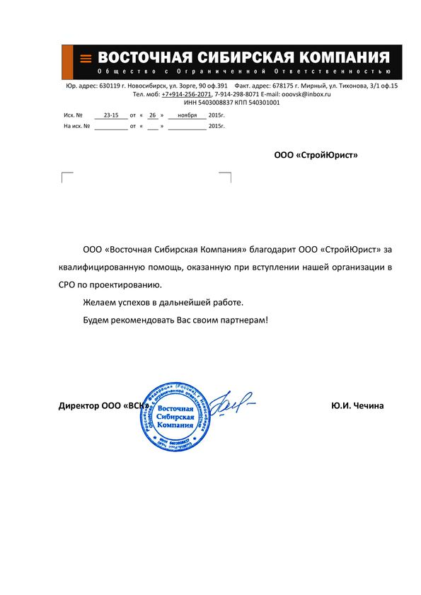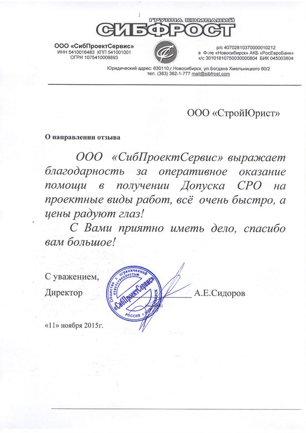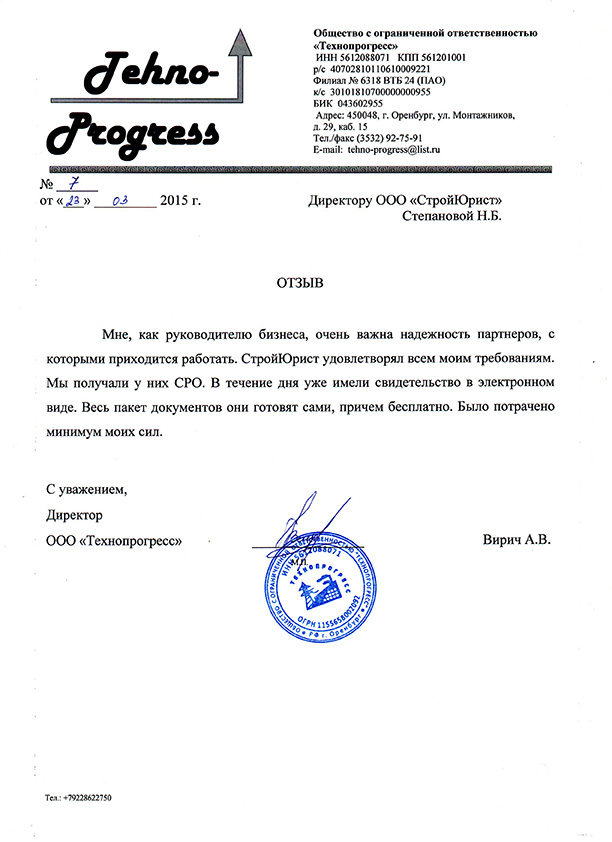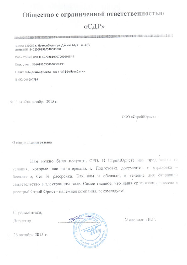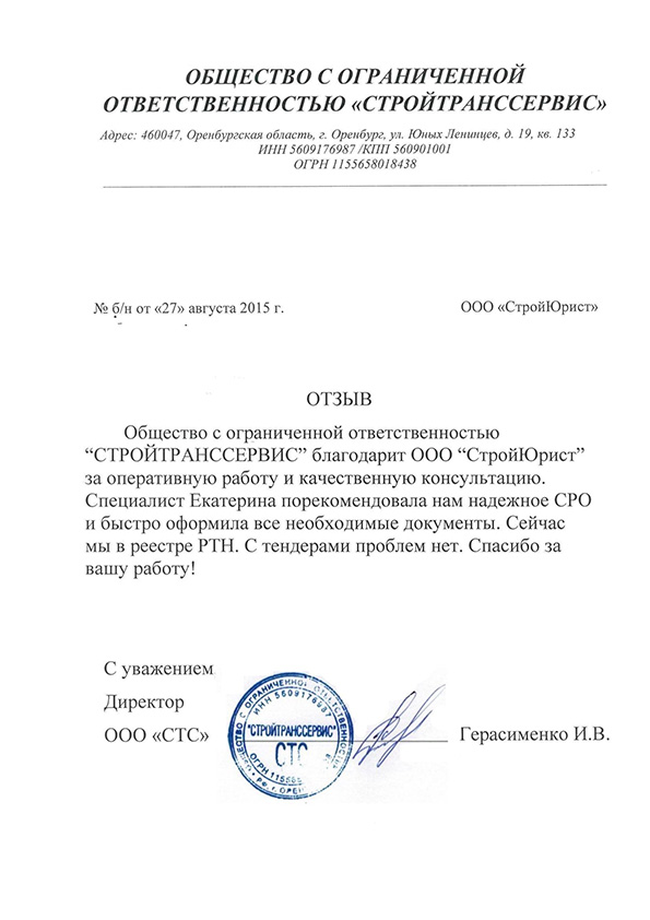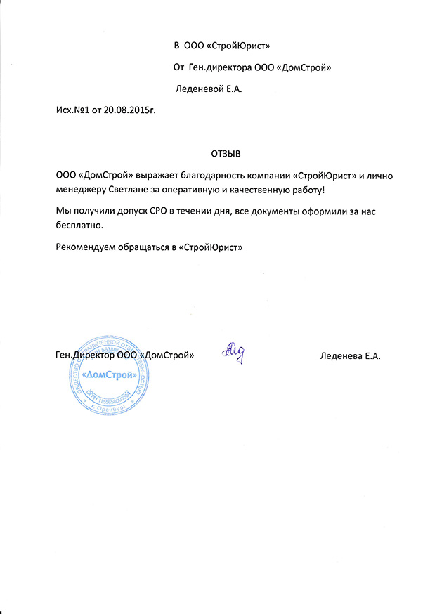 Отзывы клиентов "СтройЮрист" по вступлению в СРО в Березниках