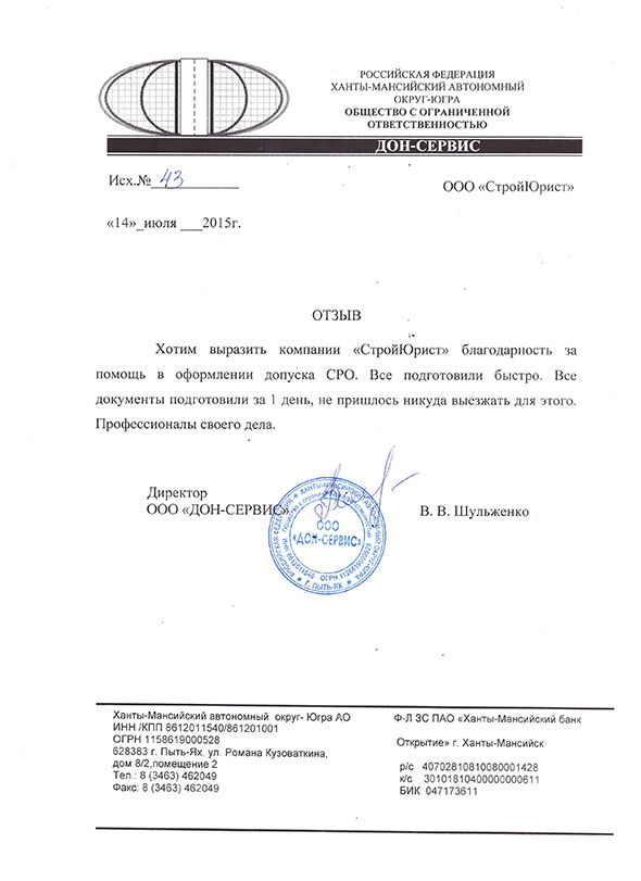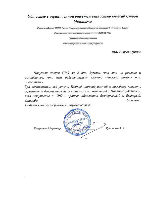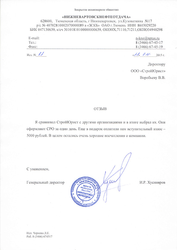 Отзывы клиентов "СтройЮрист" по вступлению в СРО в Березниках