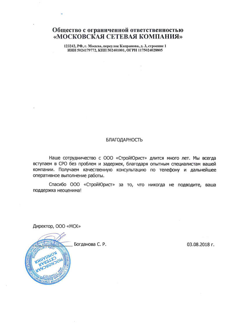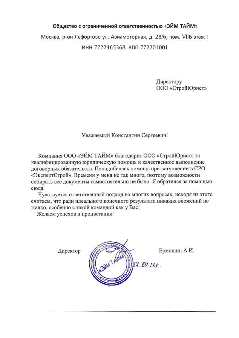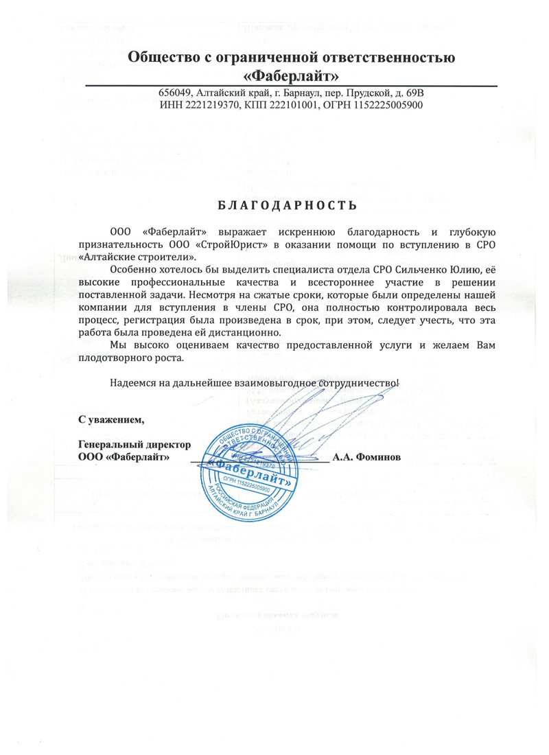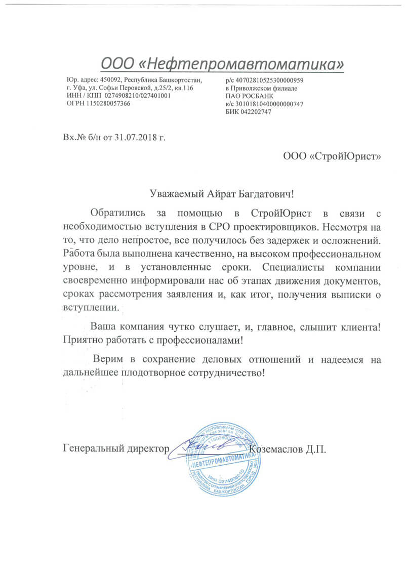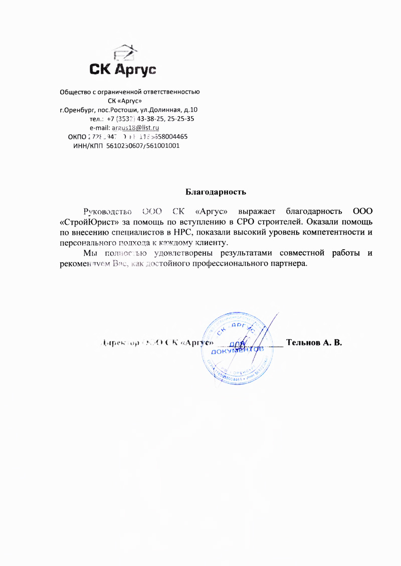 Отзывы клиентов "СтройЮрист" по вступлению в СРО в Березниках