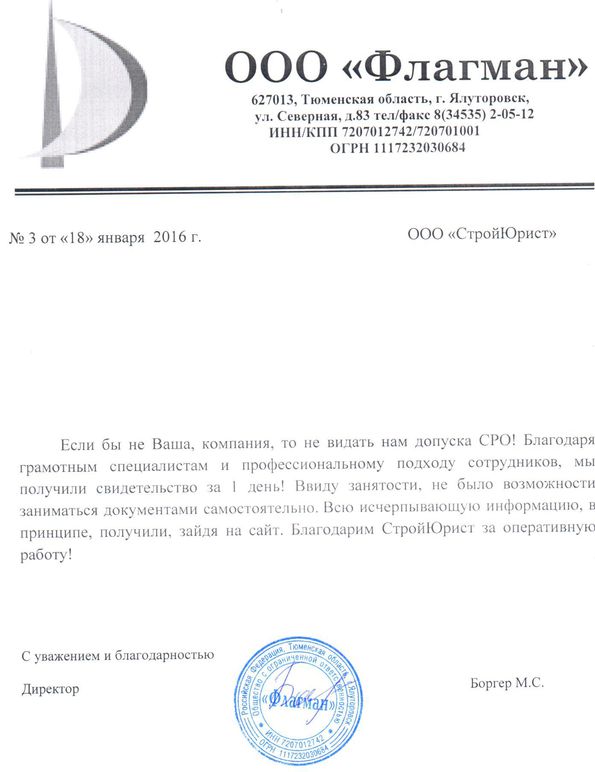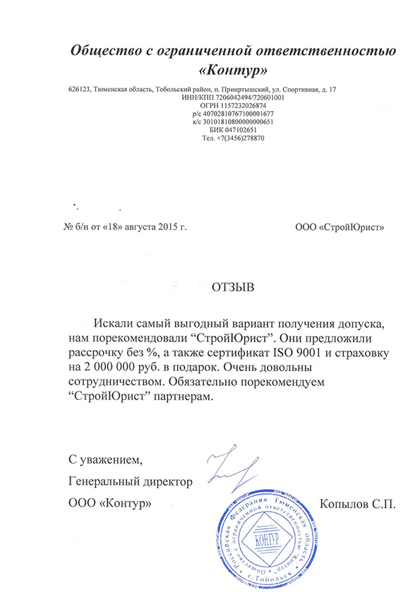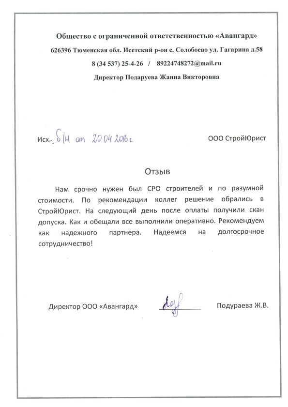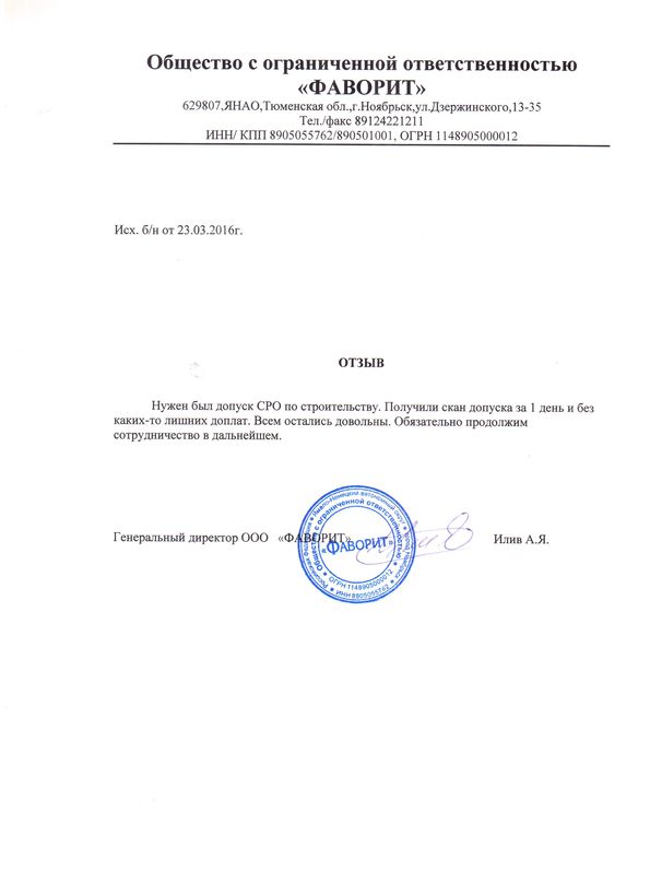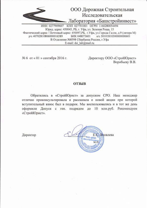 Отзывы клиентов "СтройЮрист" по вступлению в СРО в Березниках