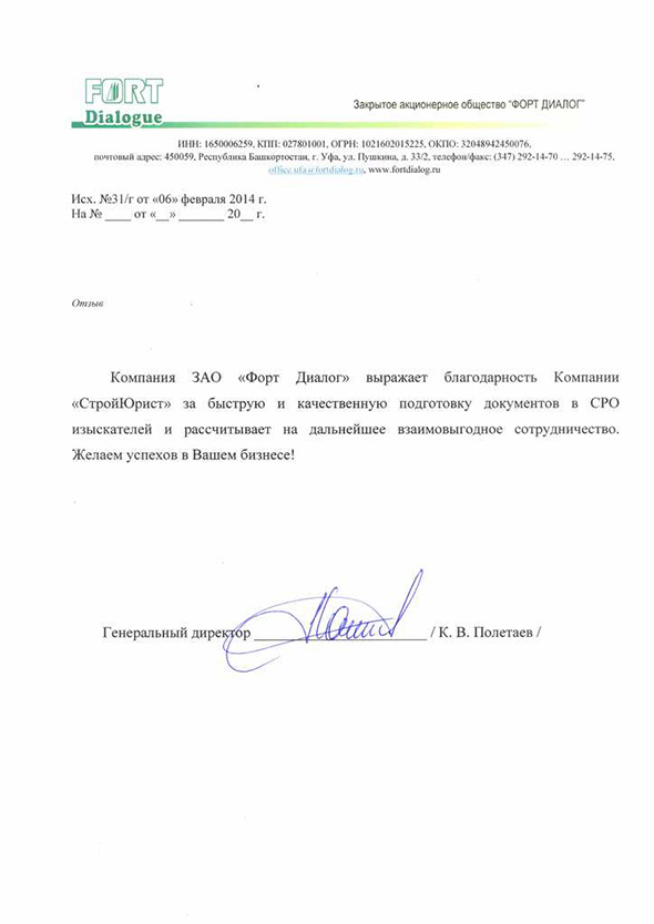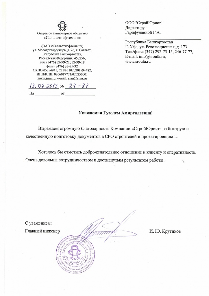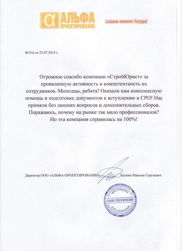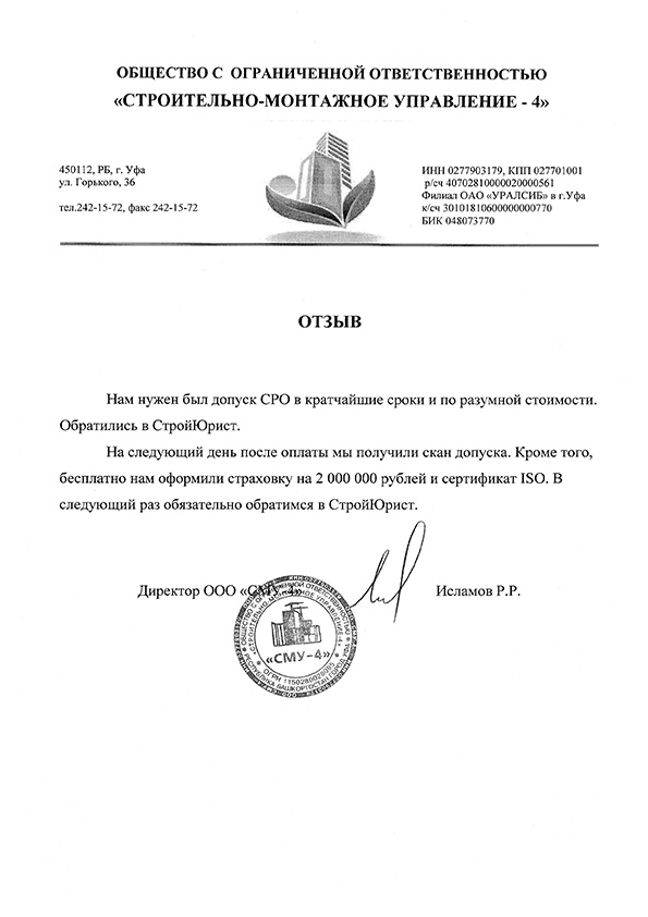 Отзывы клиентов "СтройЮрист" по вступлению в СРО в Березниках