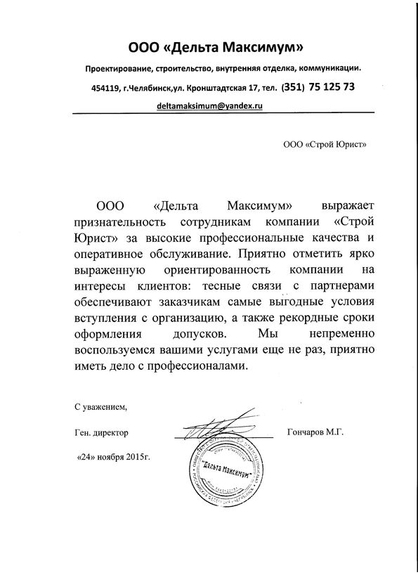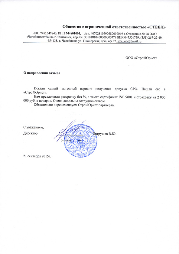 Отзывы клиентов "СтройЮрист" по вступлению в СРО в Березниках
